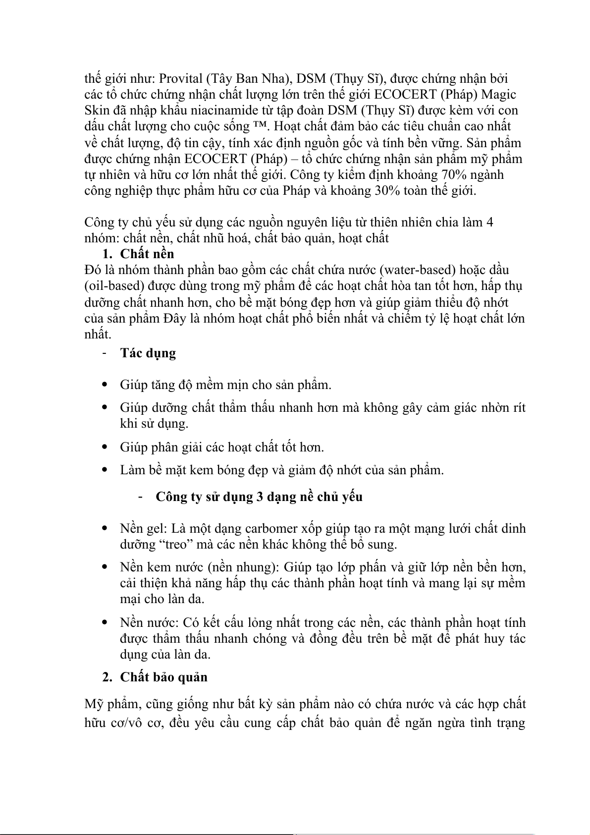 thế giới như: Provital (Tây Ban Nha), DSM (Thụy Sĩ), được chứng nhận bởi