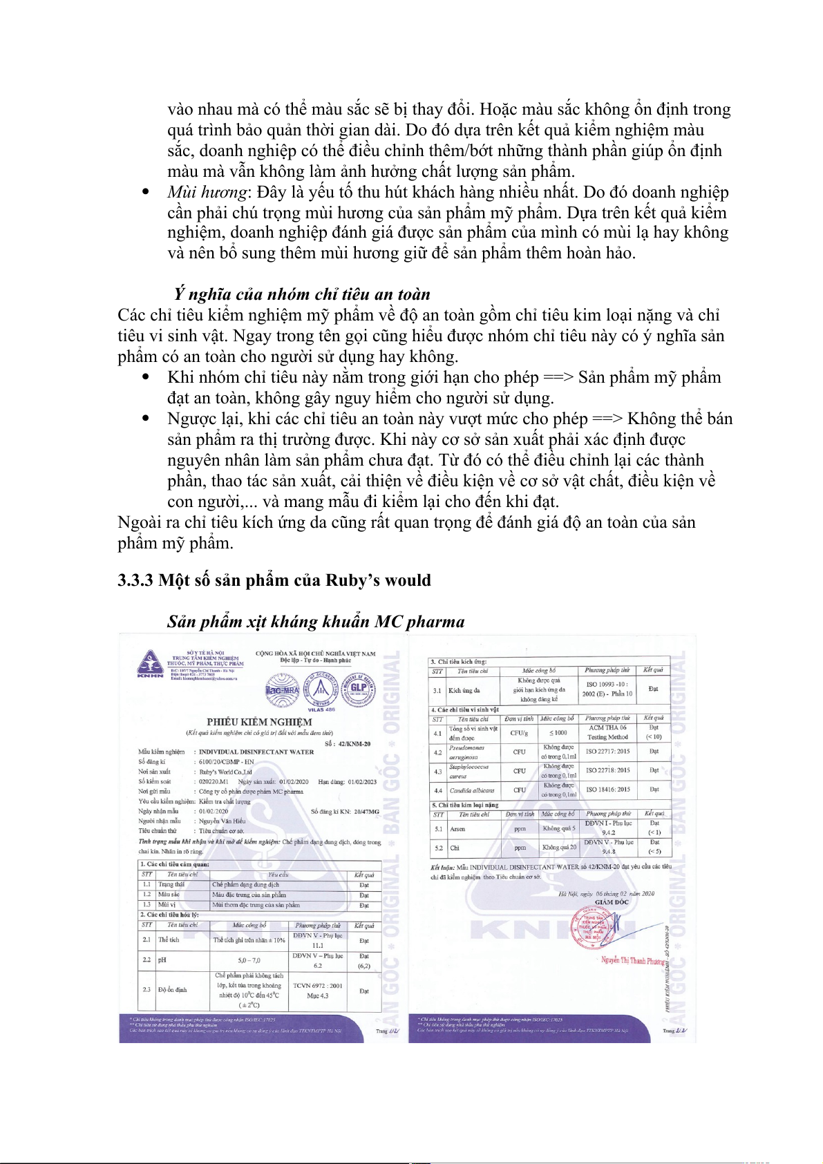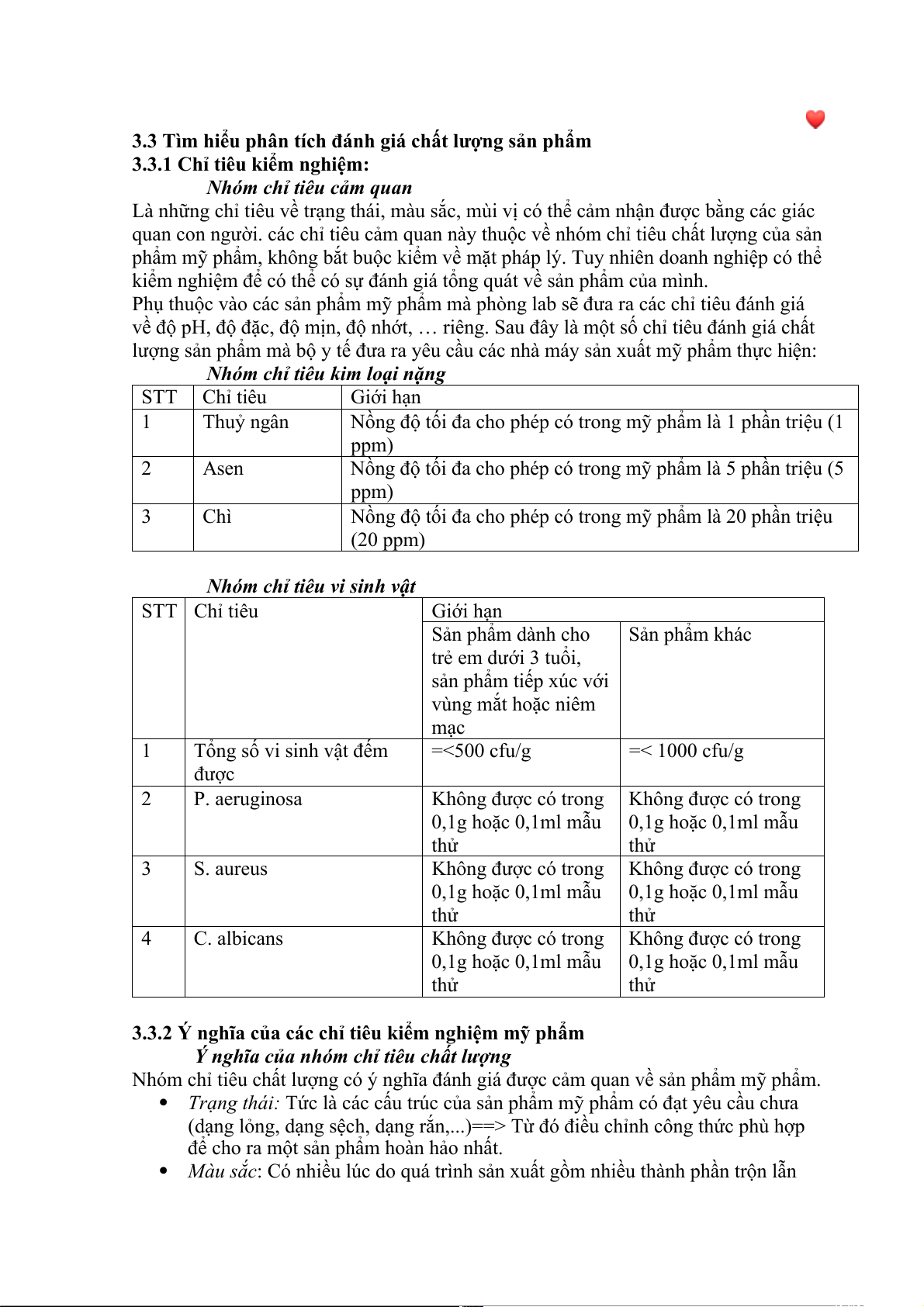 Khi nhóm chỉ tiêu này nằm trong giới hạn cho phép ==> Sản phẩm mỹ phẩm