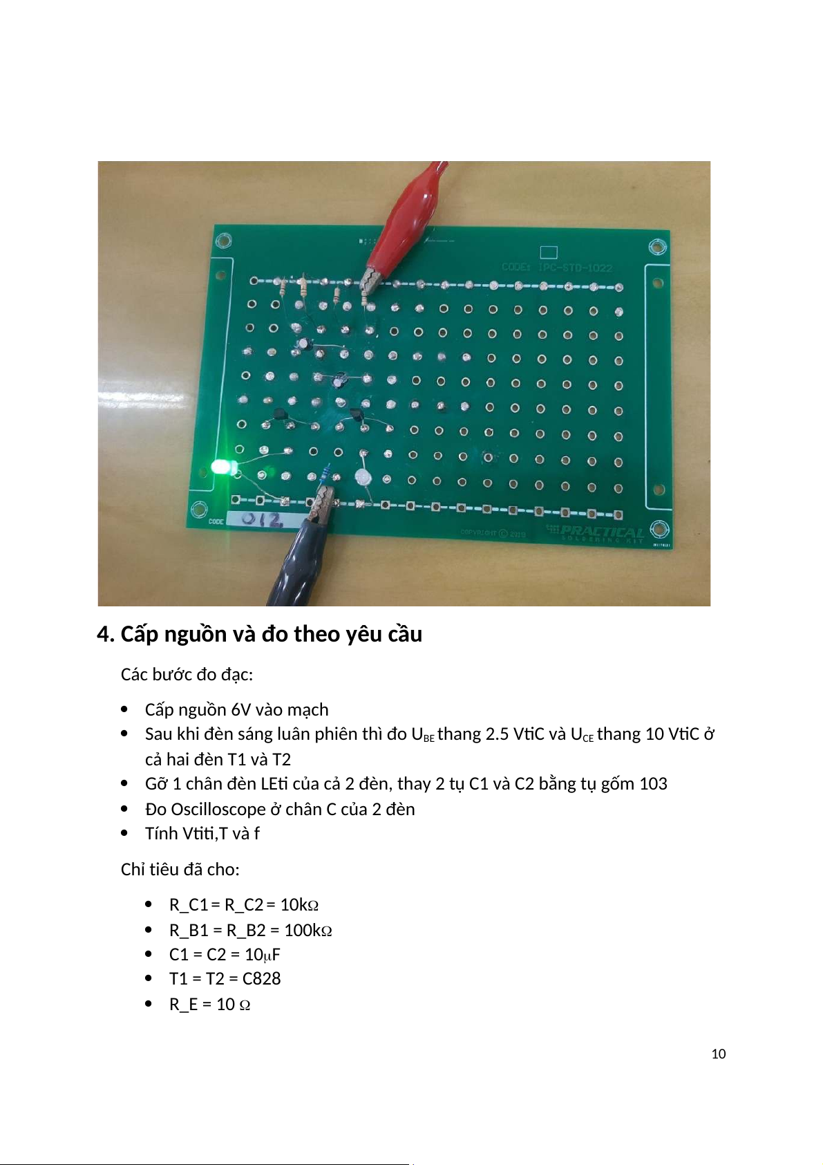 4. Cấp nguồn và đo theo yêu cầu Các bước đo đạc: Cấp nguồn 6V vào mạch