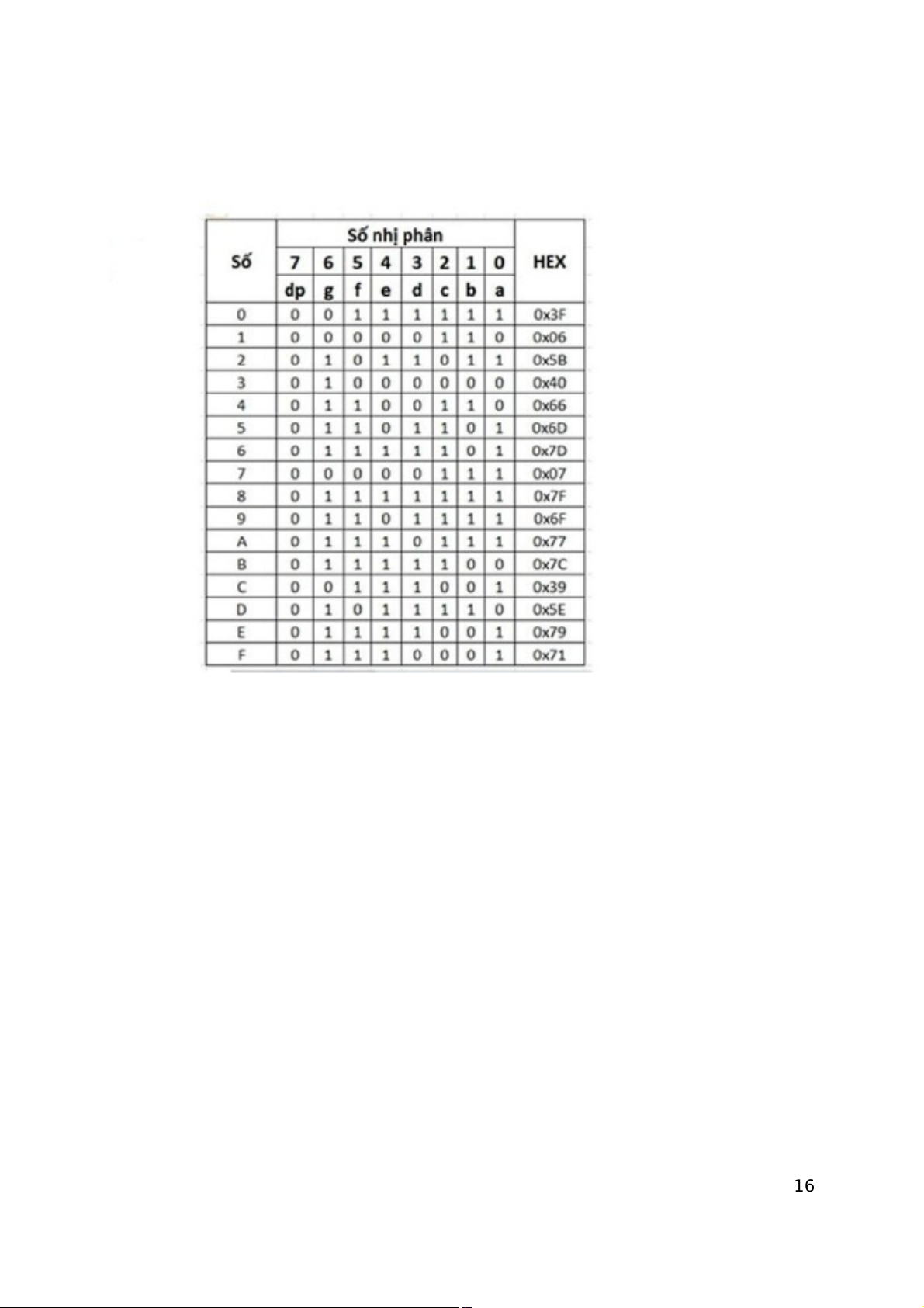 - Bảng mô tả cách tạo ra chữ số hiển thị: Chung cực dương: Chung cực âm: 15 16