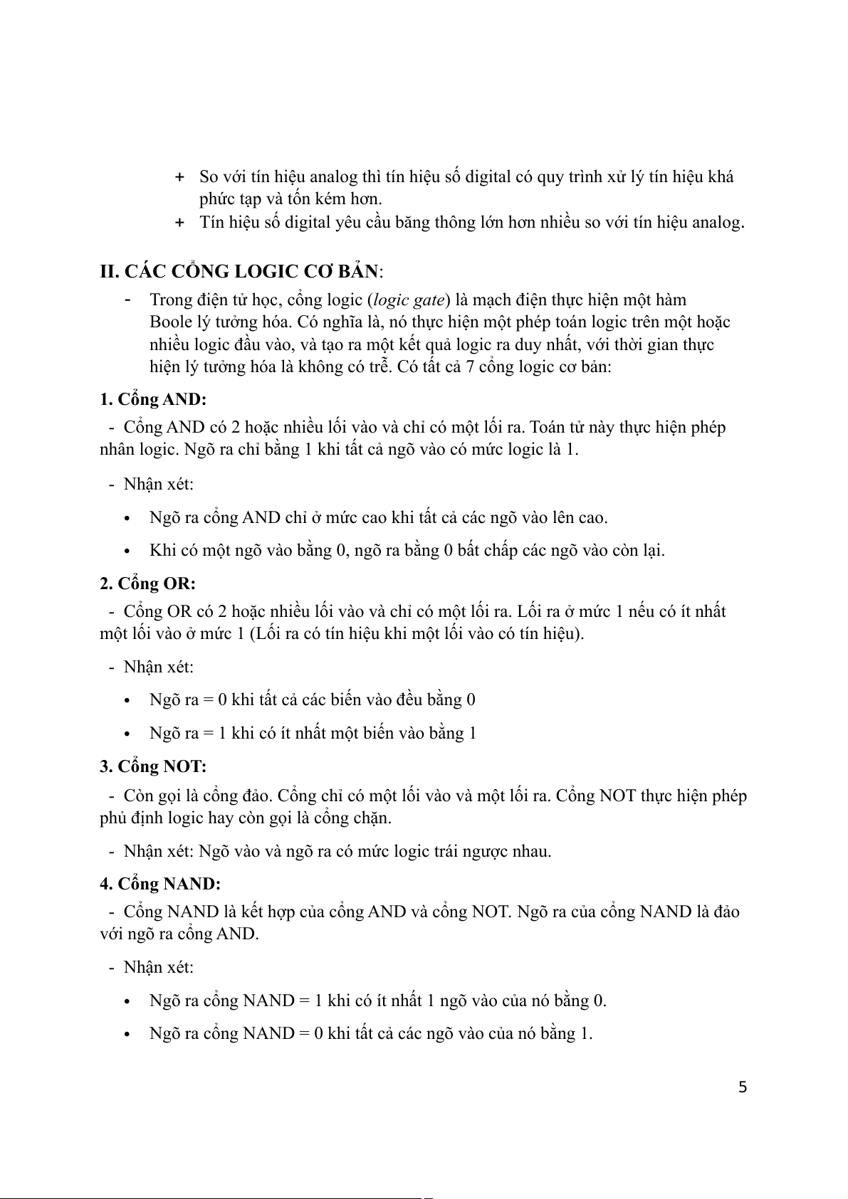 II. CÁC CỔNG LOGIC CƠ BẢN:........................................................................5