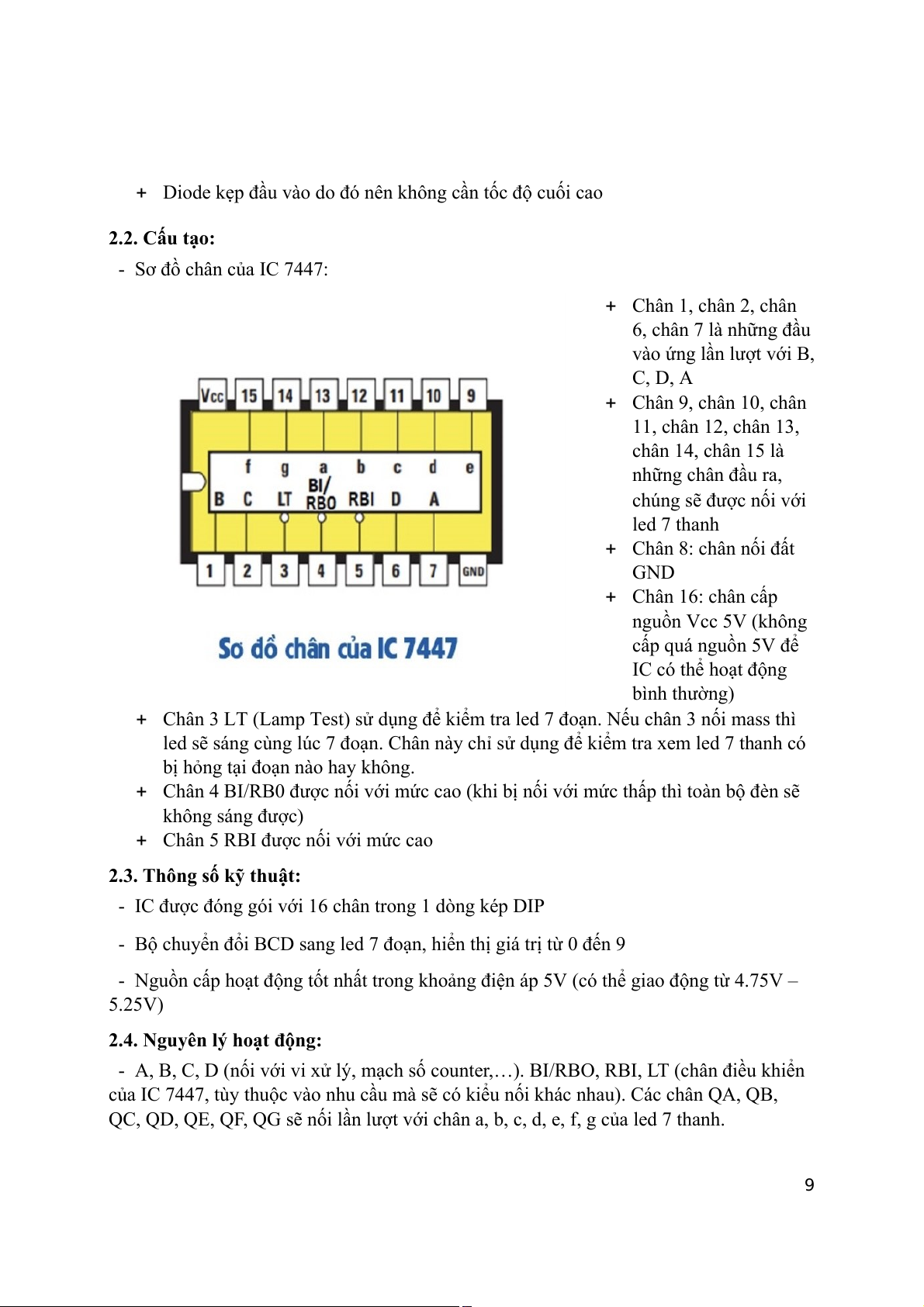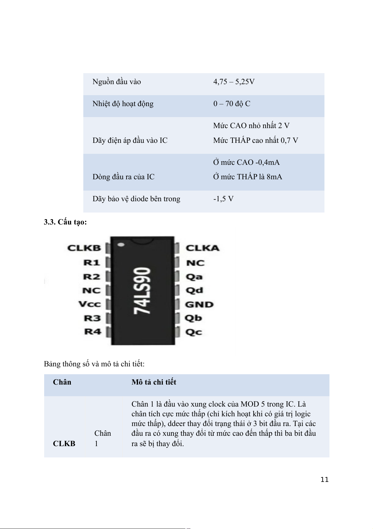 3.2. Thông số kỹ thuật: Thông số 7490 10 Nguồn đầu vào 4,75 – 5,25V Nhiệt độ hoạt động 0 – 70 độ C Mức CAO nhỏ nhất 2 V