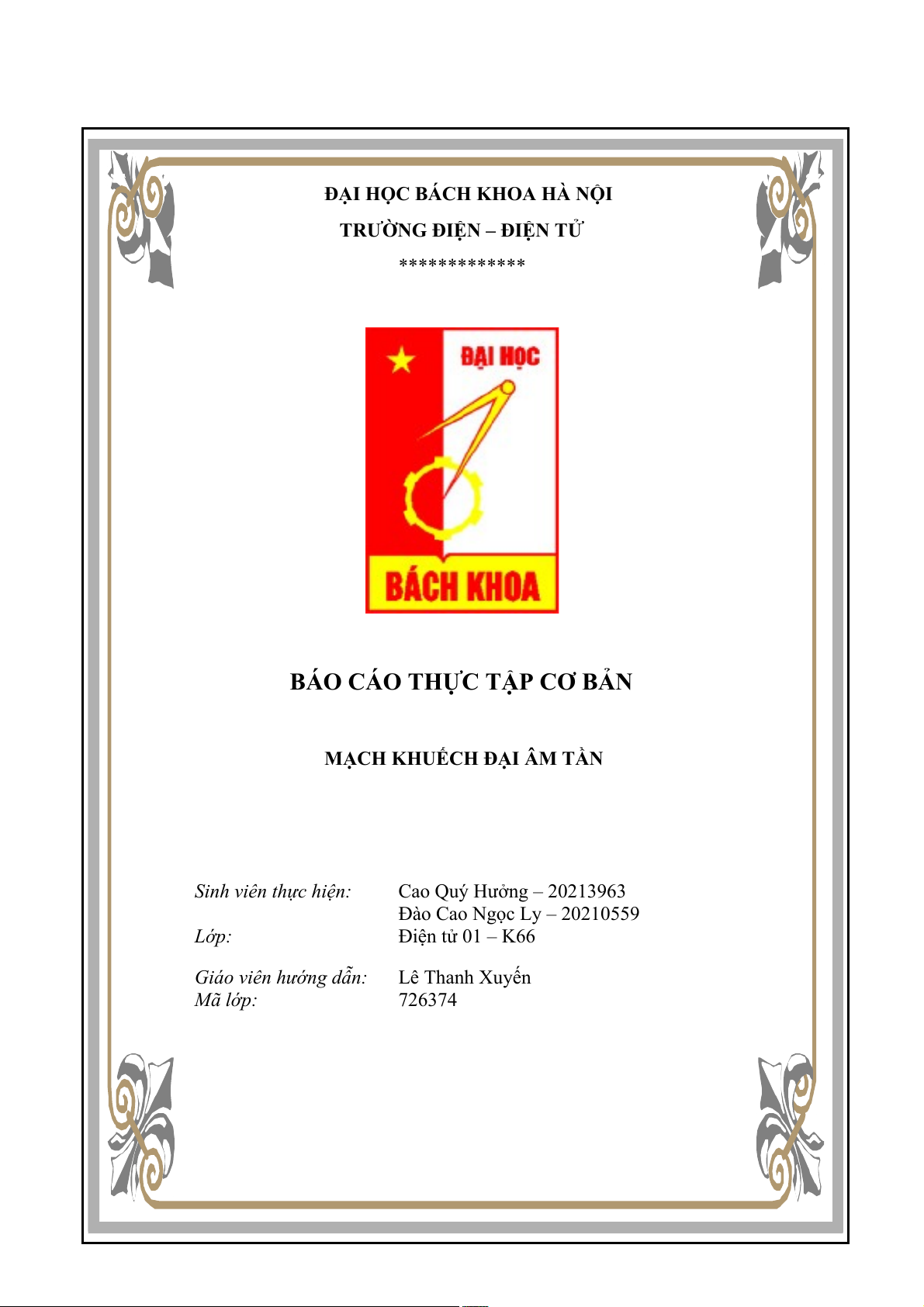 Đào Cao Ngọc Ly – 20210559 Lớp: Điện tử 01 – K66