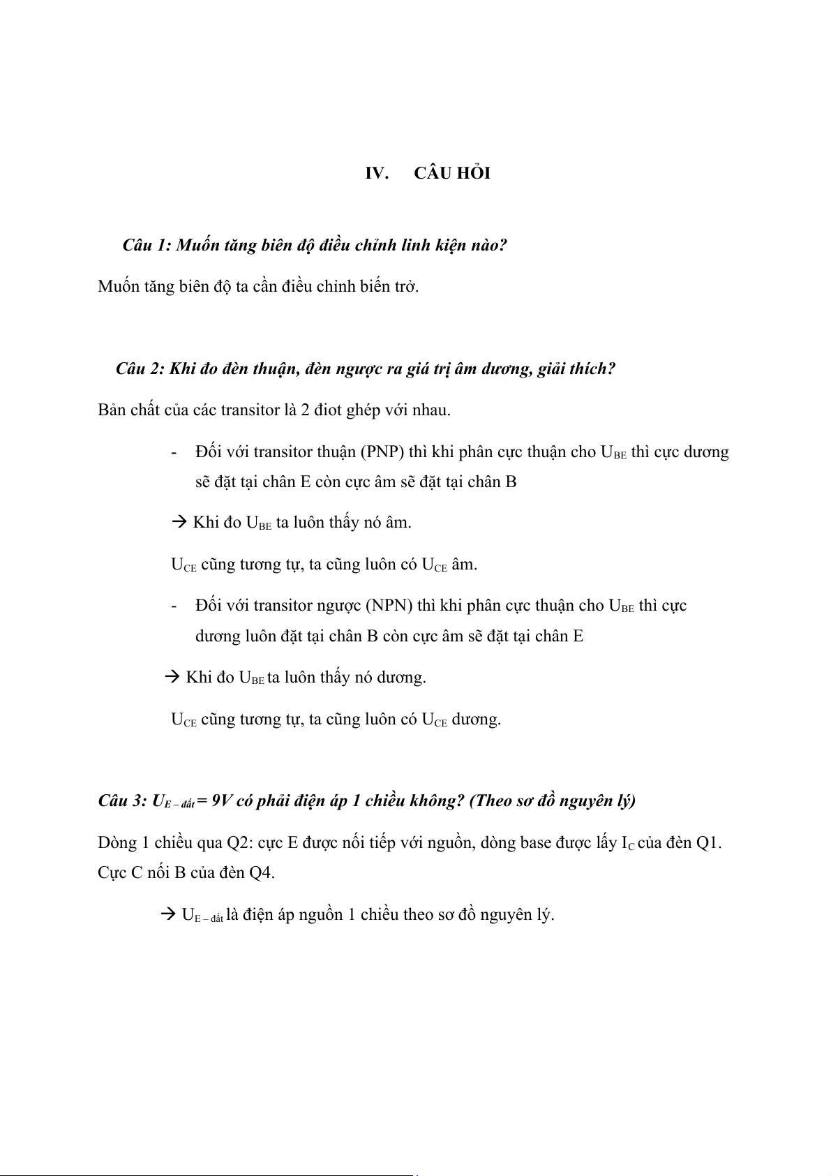 Câu 2: Khi đo đèn thuận, đèn ngược ra giá trị âm dương, giải thích?
