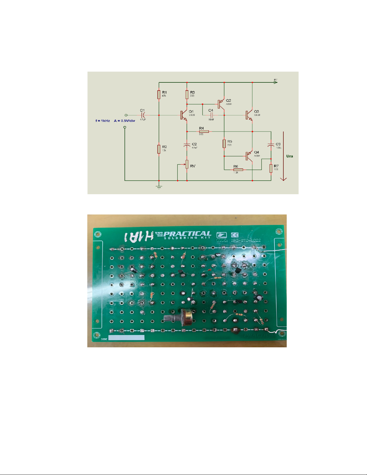 đồ lý thuyết, cần điều chỉnh Q3: UBE = 0,5V, UCE = UE-đất = 3,8V thì điều chỉnh linh kiện nào? Trả lời:
