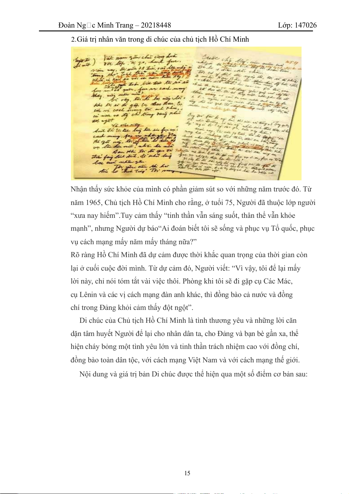 lại ở cuối cuộc đời mình. Từ dự cảm đó, Người viết: “Vì vậy, tôi để lại mấy
