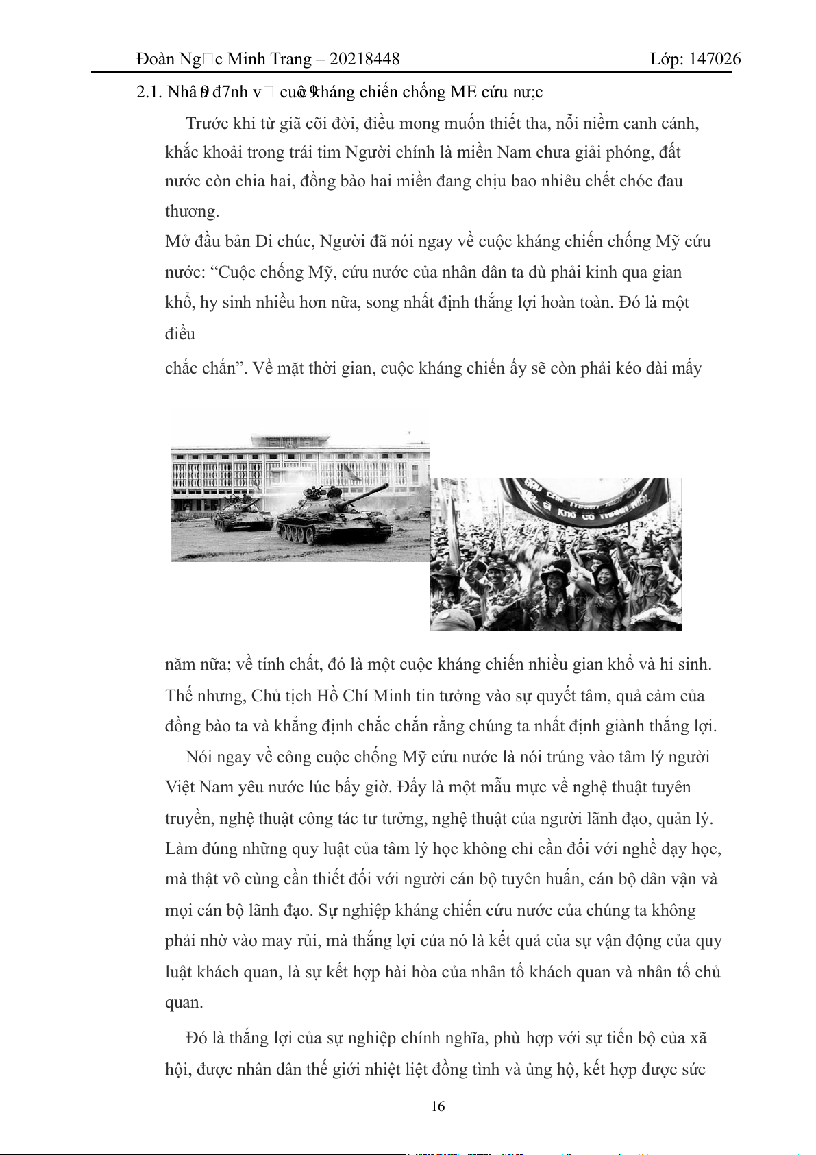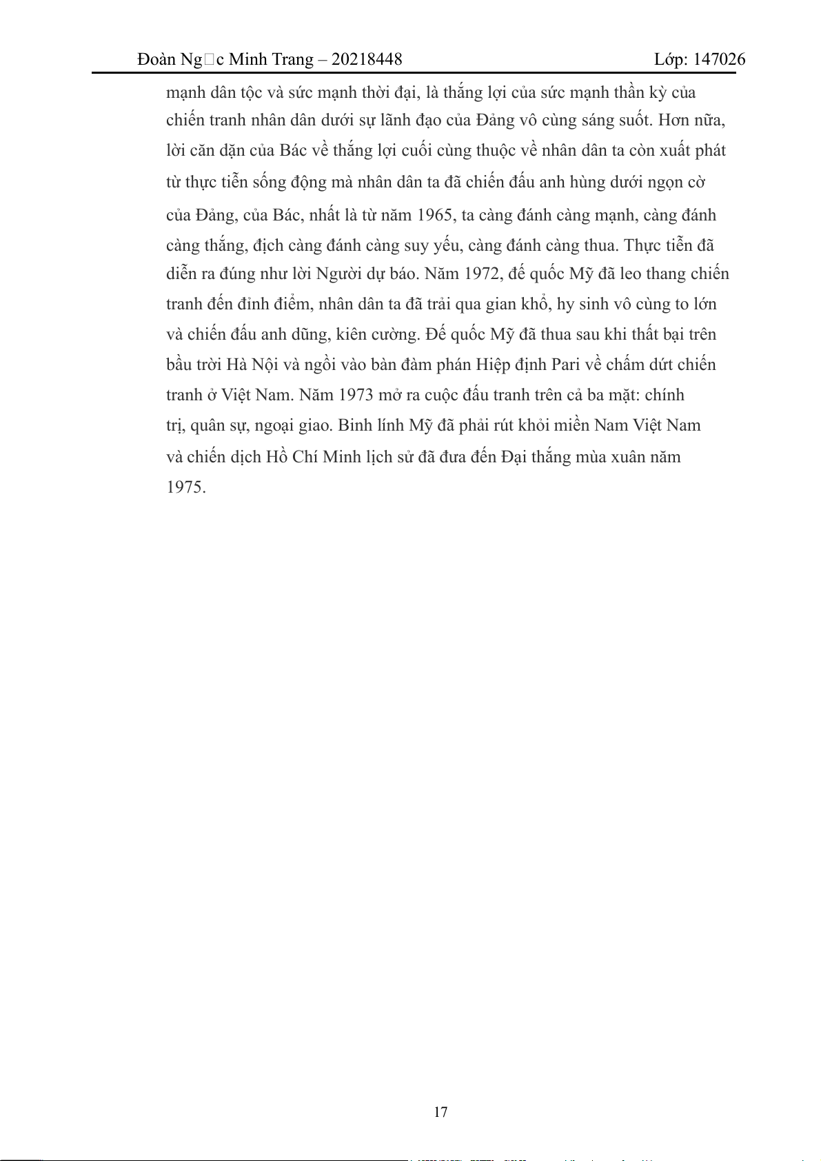 và chiến dịch Hồ Chí Minh lịch sử đã đưa đến Đại thắng mùa xuân năm 1975. 17 Đàm Quang Huy – 20214298 Lớp: 147026