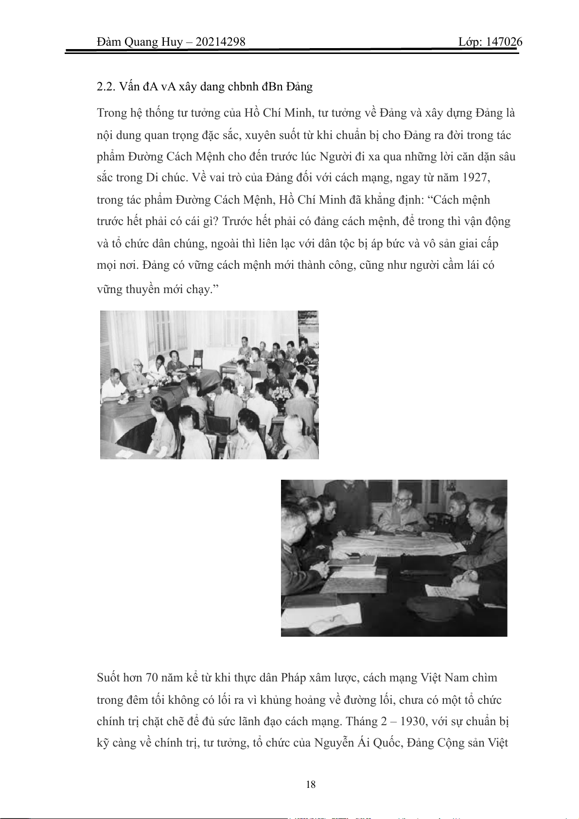 kỹ càng về chính trị, tư tưởng, tổ chức của Nguyễn Ái Quốc, Đảng Cộng sản Việt 18 Đàm Quang Huy – 20214298 Lớp: 147026