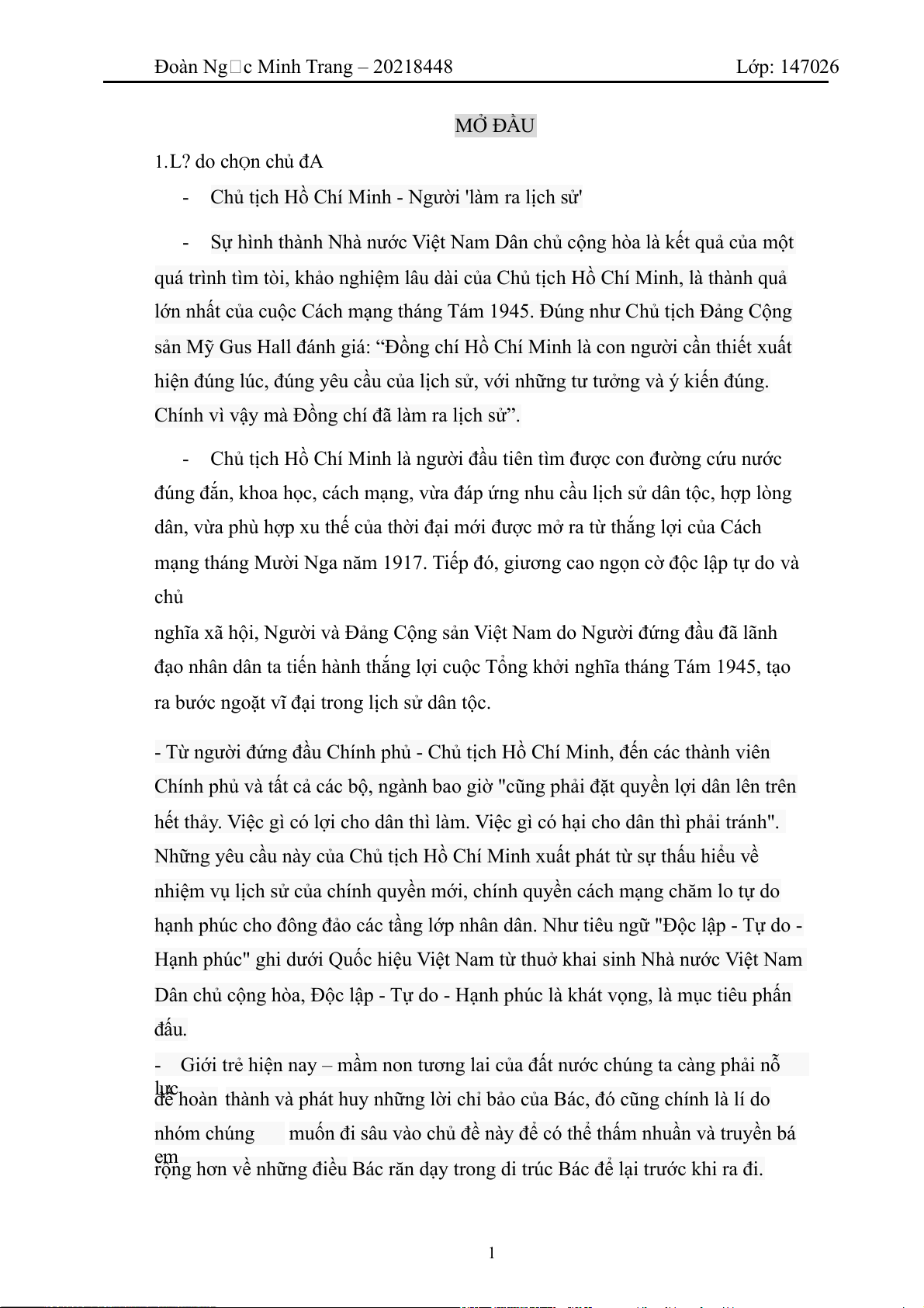Đoàn Ng c Minh Trang – 20218448 Lớp: 147026 MỞ ĐẦU 1.L? do chỌn chủ đA