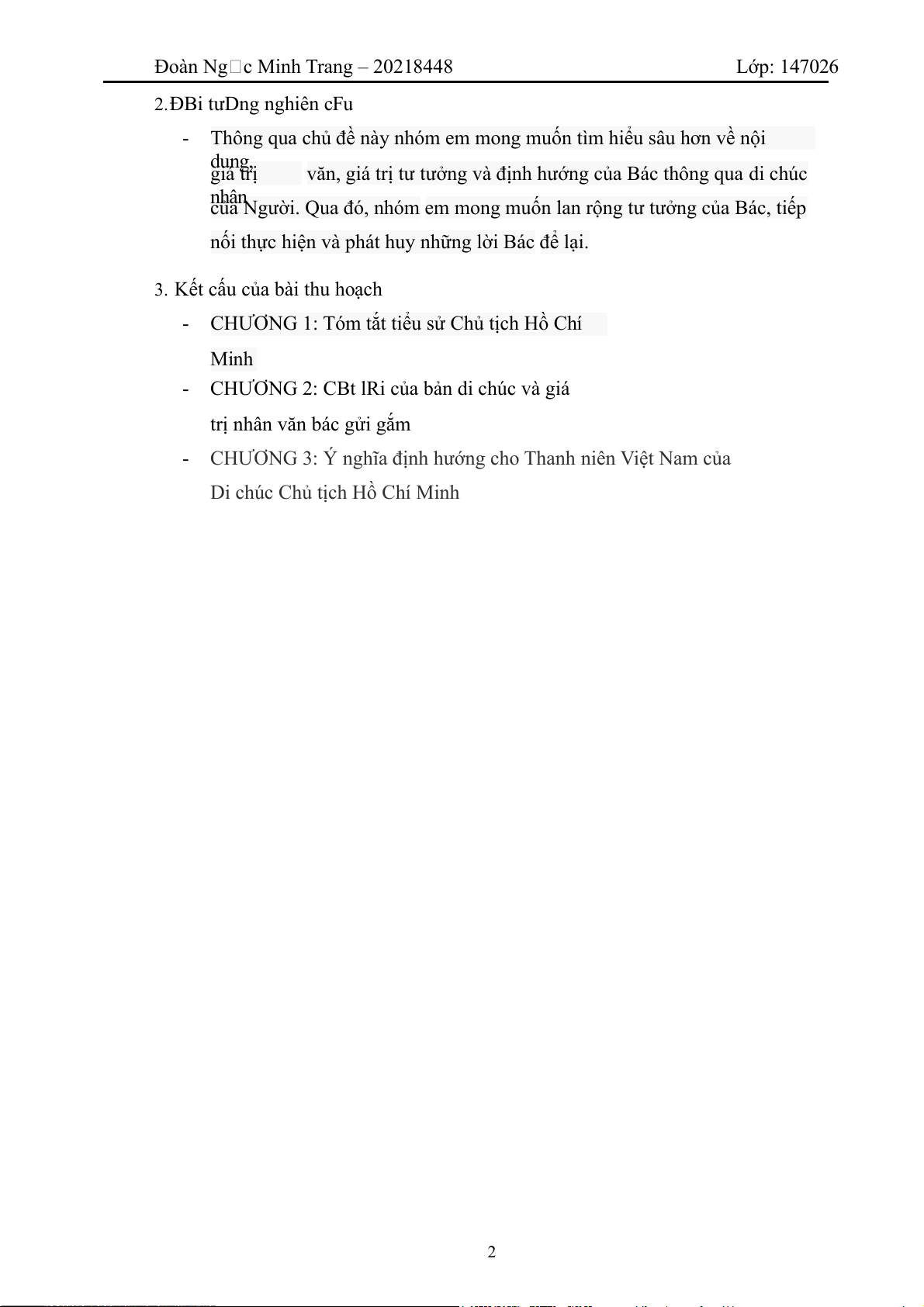 Đoàn Ng c Minh Trang – 20218448 Lớp: 147026 2.ĐBi tưDng nghiên cFu