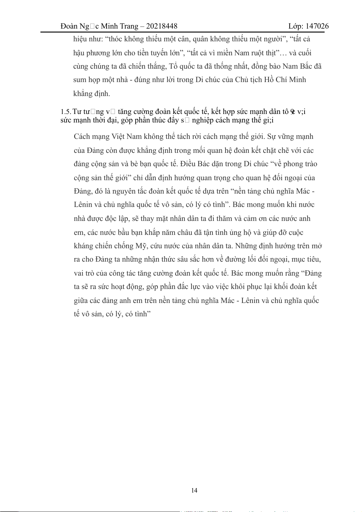 1.5. Tư tư ng v tăng cường đoàn kết quốc tế, kết hợp sức mạnh dân tô 9c v;i