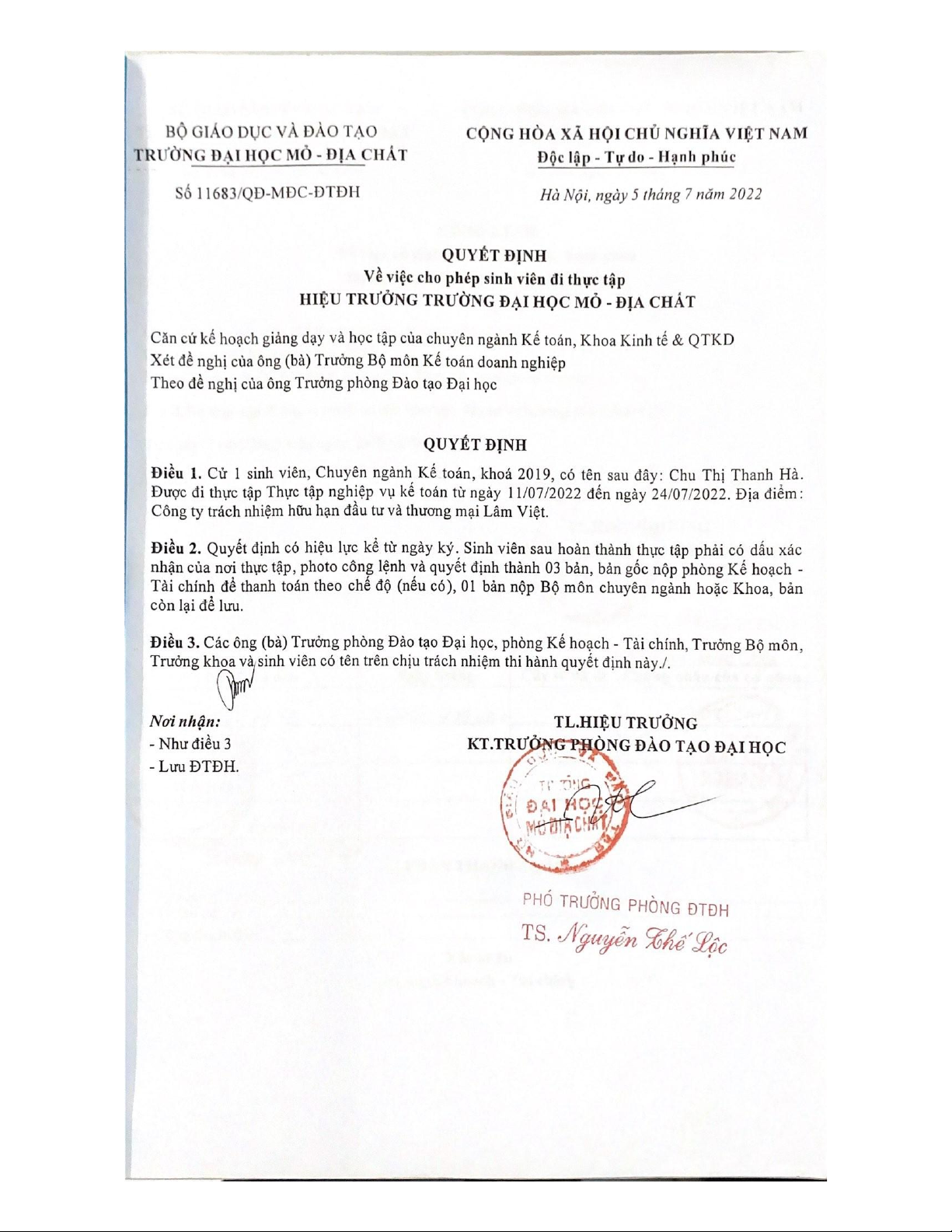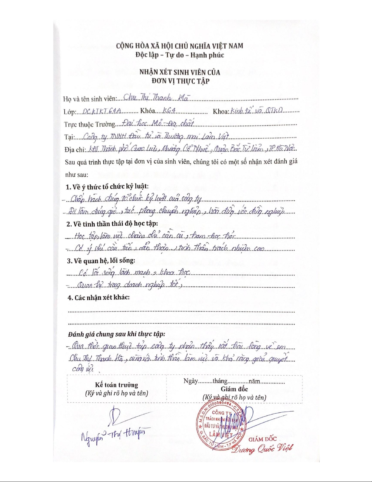Báo cáo thực tập nghiệp vụ kế toán | Môn Báo cáo thực tập - Đại học Mỏ – Địa chất