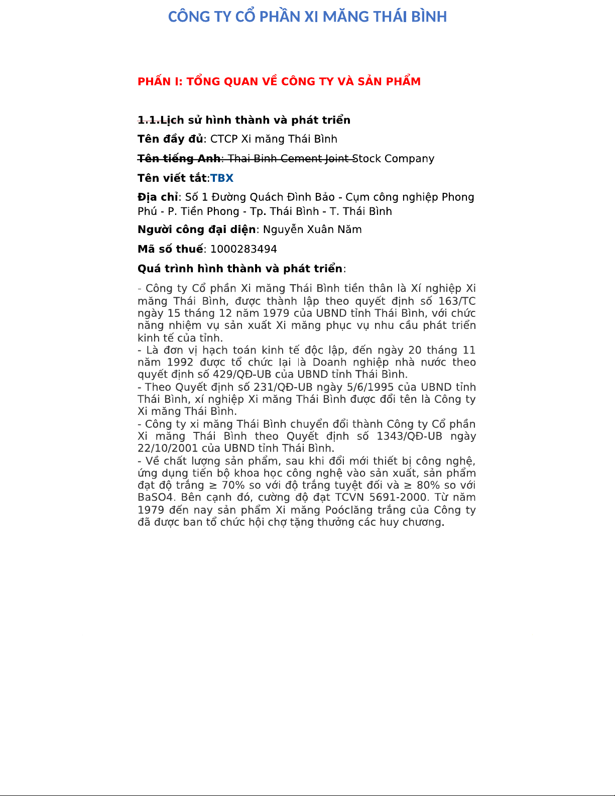 Báo cáo Thực tập Quản trị sản xuất tại Công ty Xi măng Thái Bình