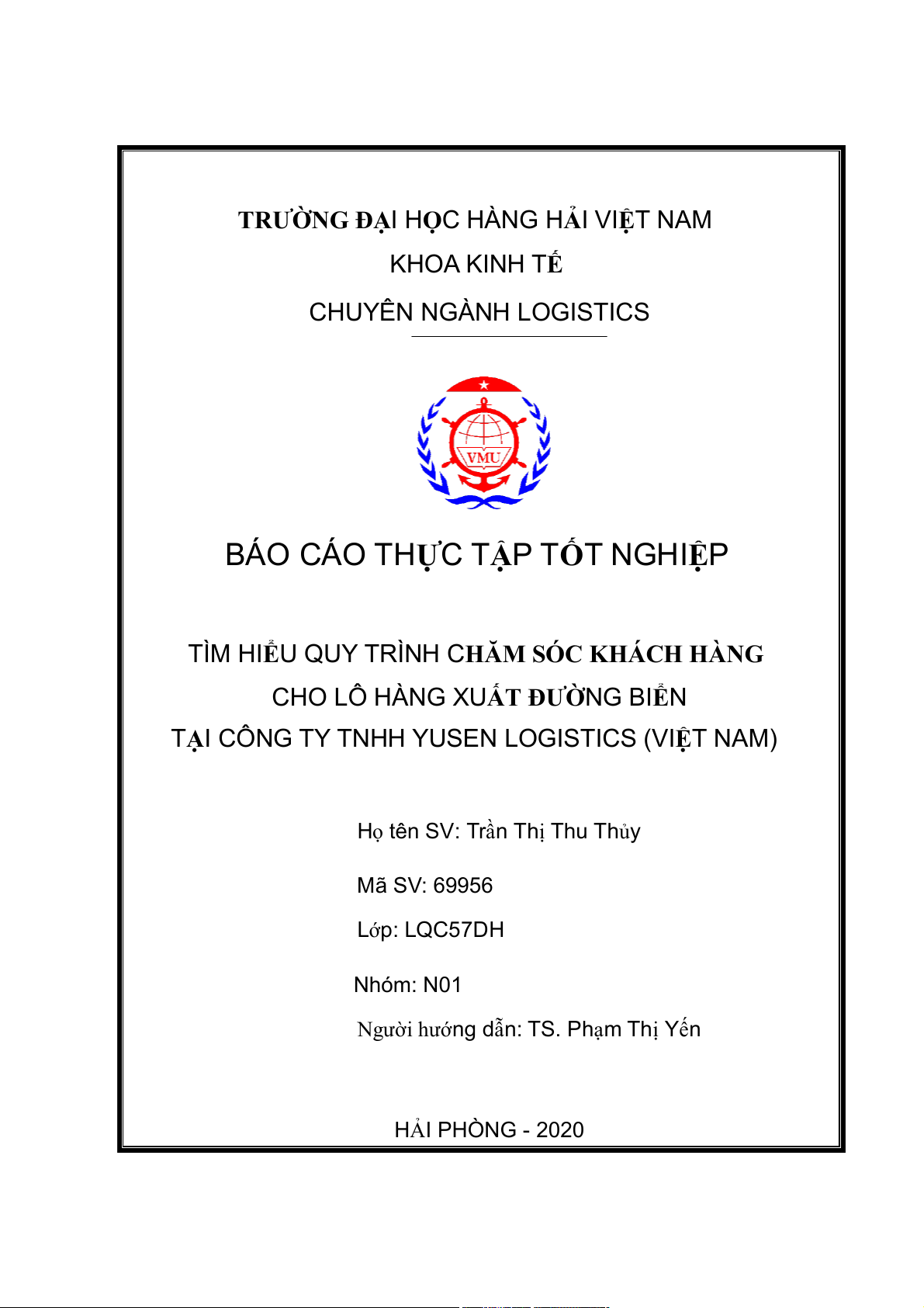 TRƯỜNG ĐẠI HỌC HÀNG HẢI VIỆT NAM KHOA KINH TẾ CHUYÊN NGÀNH LOGISTICS
