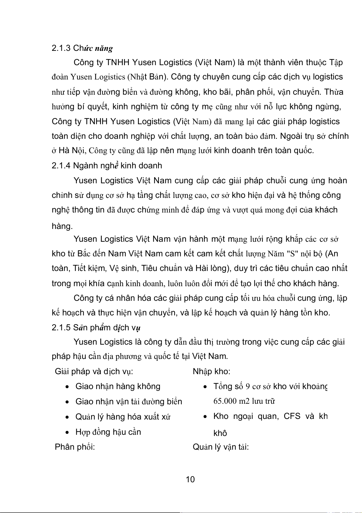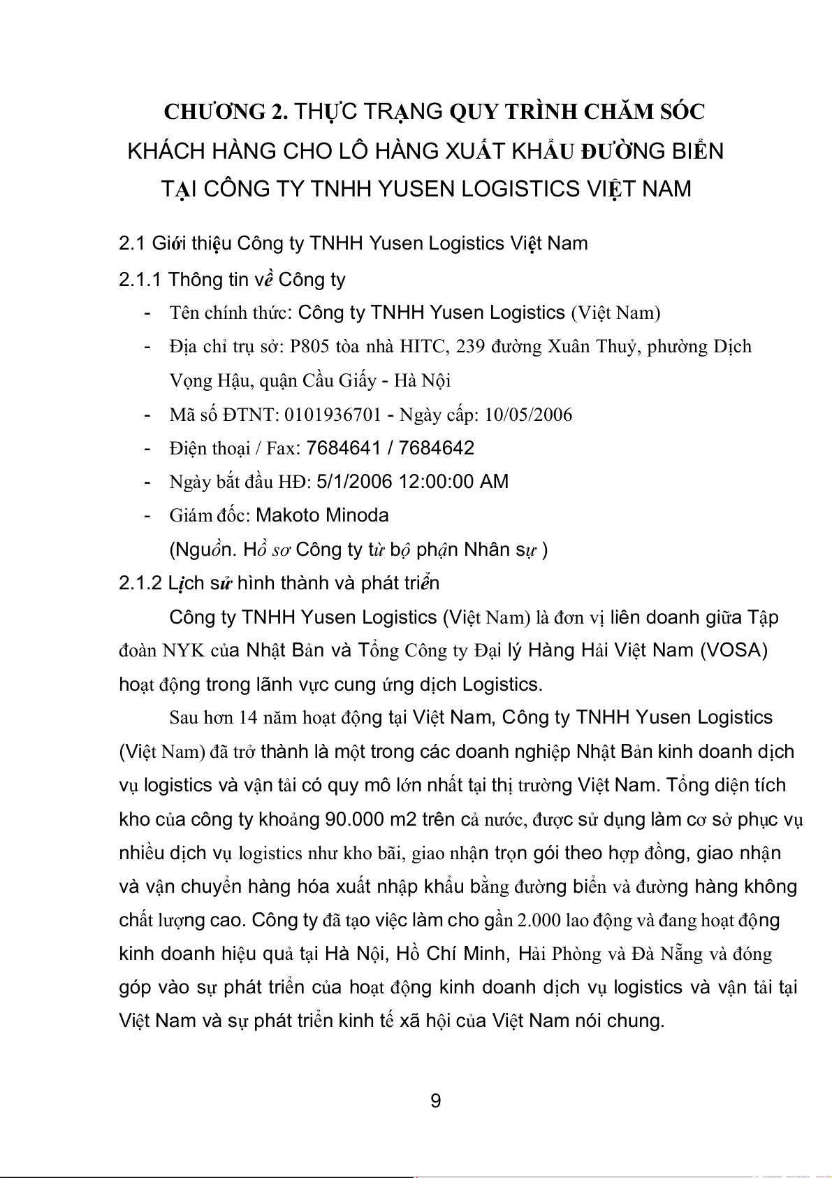 YUSEN LOGISTICS VIỆT NAM ................................................................... 9