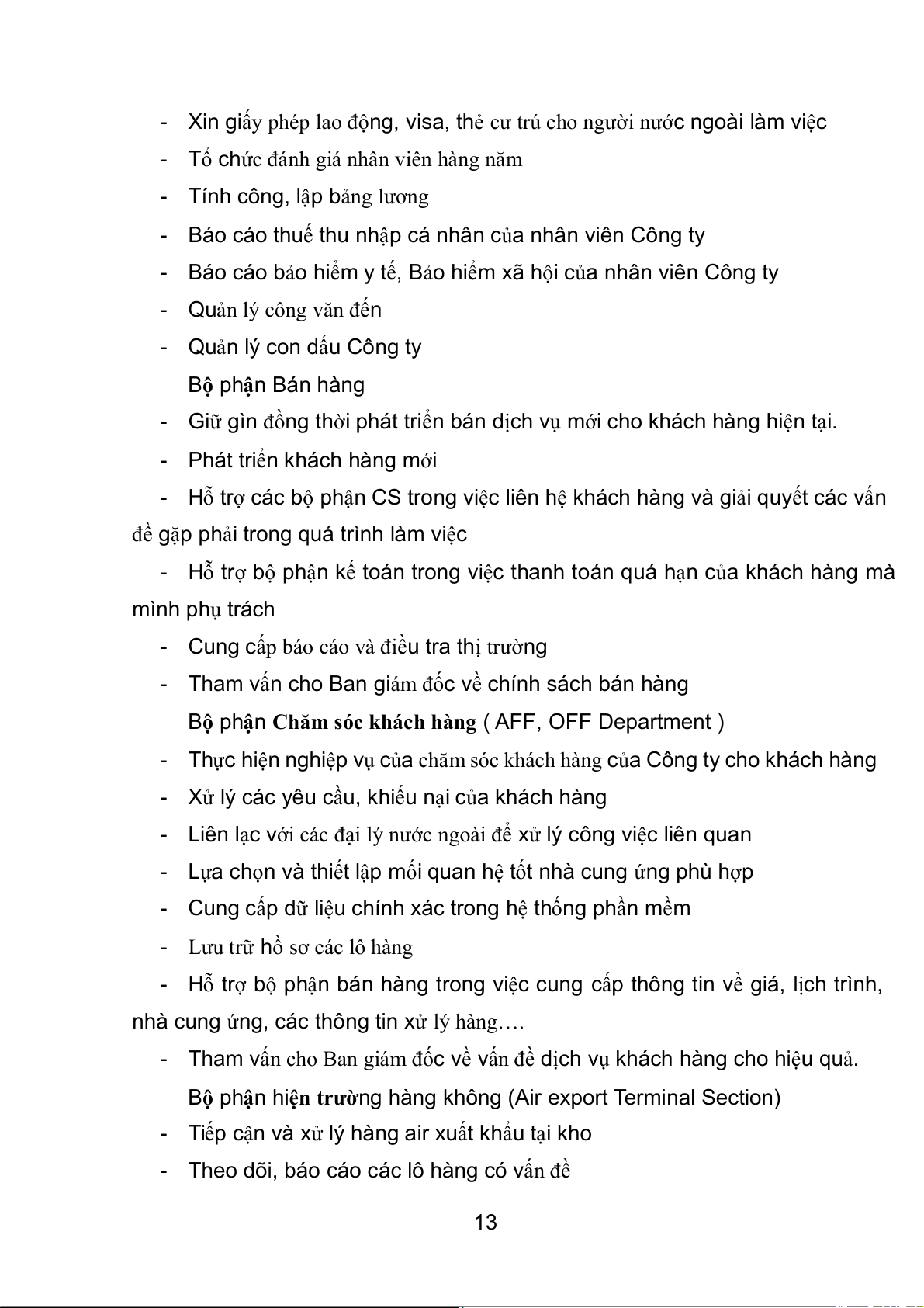 - Quản lý, lưu trữ hồ sơ, dữ liệu về nhân viên. 12