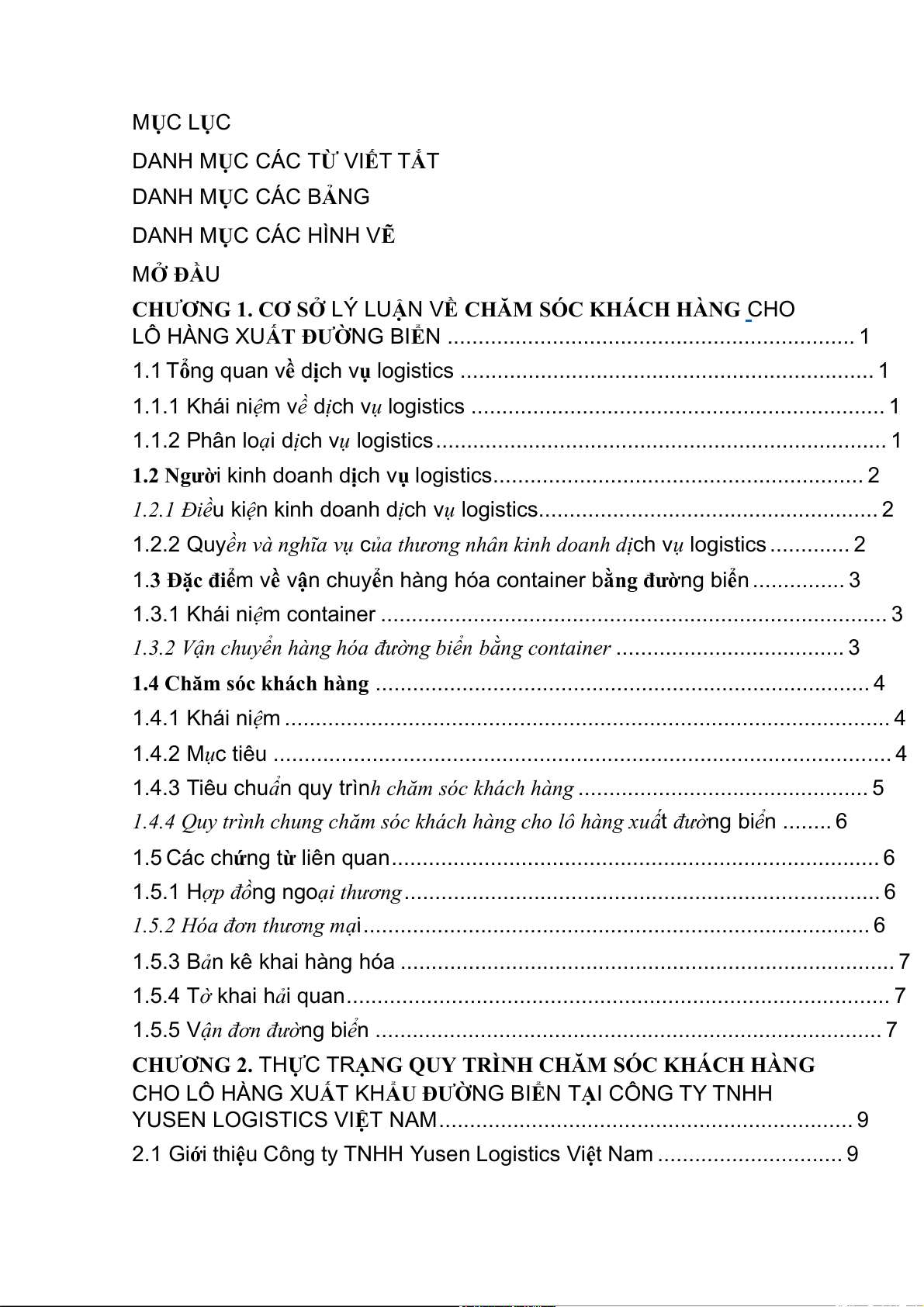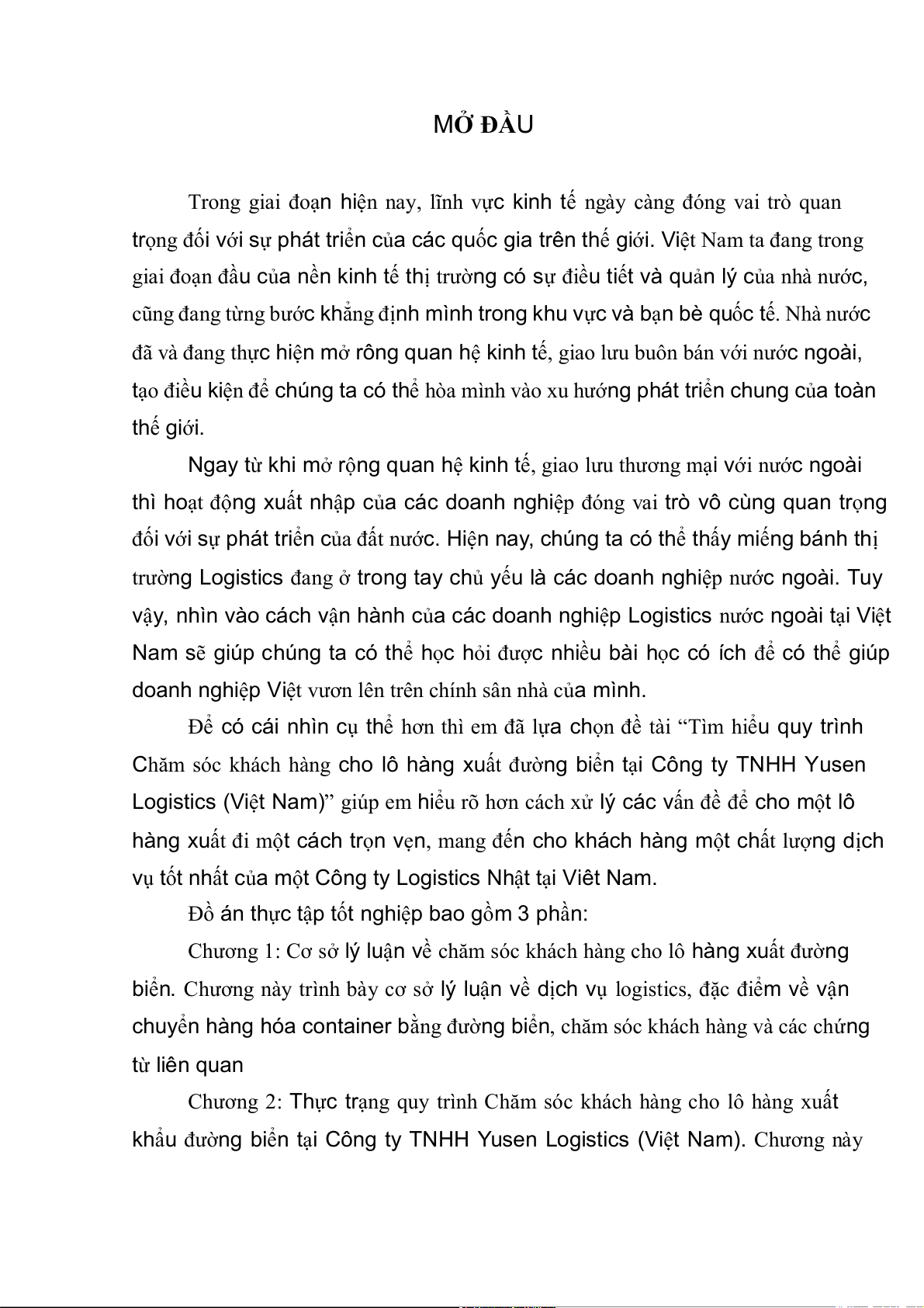2.2 khẩu đường biển tại Công ty TNHH Yusen Logistics (Việt Nam 15 MỞ ĐẦU
