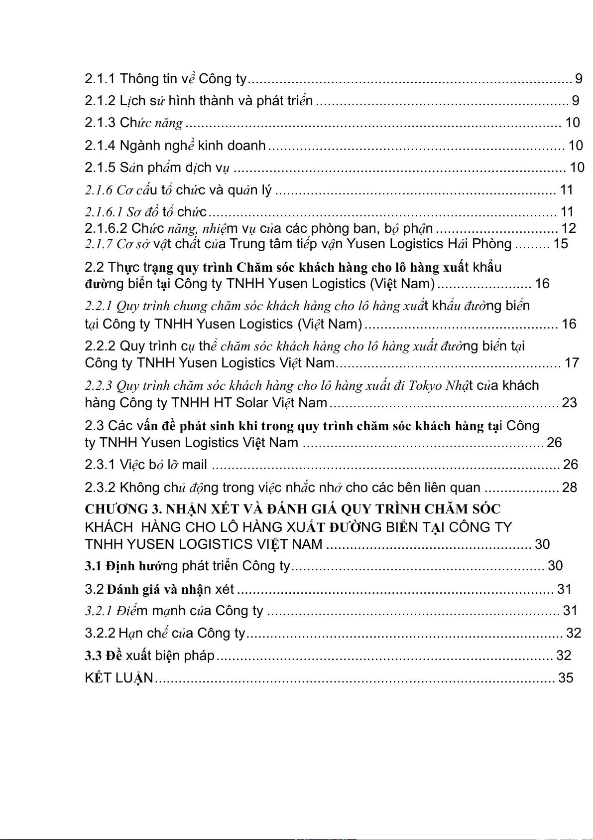 TNHH YUSEN LOGISTICS VIỆT NAM .................................................... 30
