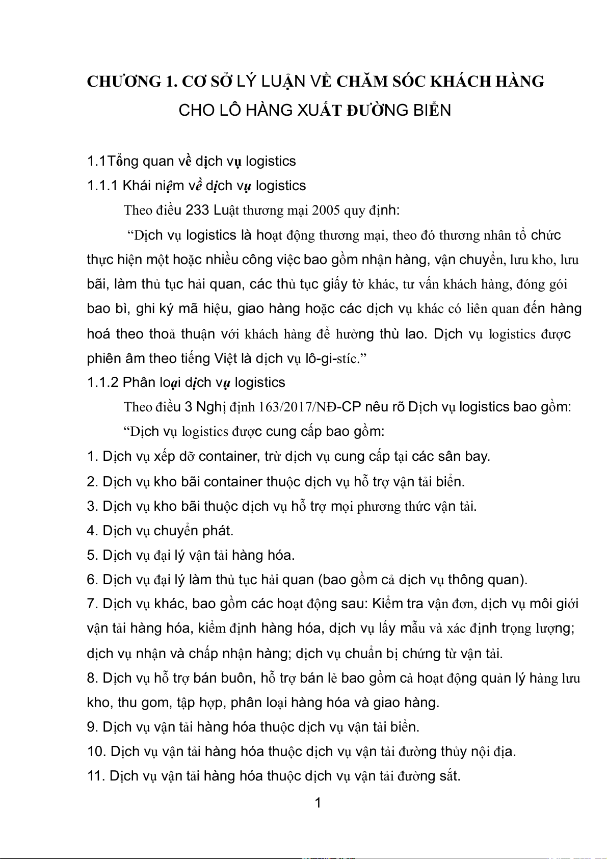 Chương 1: Cơ sở lý luận về chăm sóc khách hàng cho lô hàng xuất đường