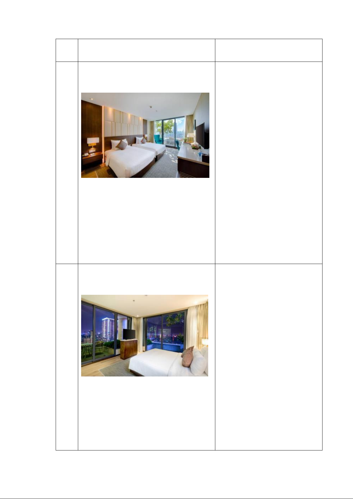 Loại giường: 1 giường cỡ lớn Hình 1. 5 Phòng Suite 9 STT Hạng Phòng Mô tả 5