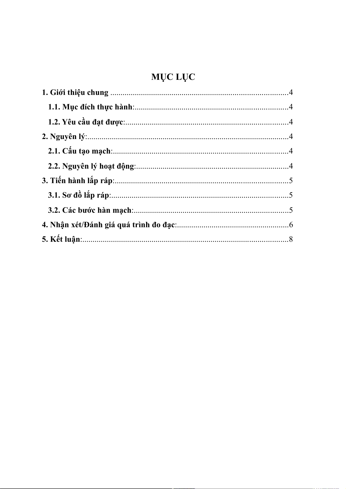 - Nắm được cách lắp ráp mạch cũng như sử dụng được các thiết bị đo 2. Nguyên lý: 2.1.Cấu tạo mạch: Hình 1