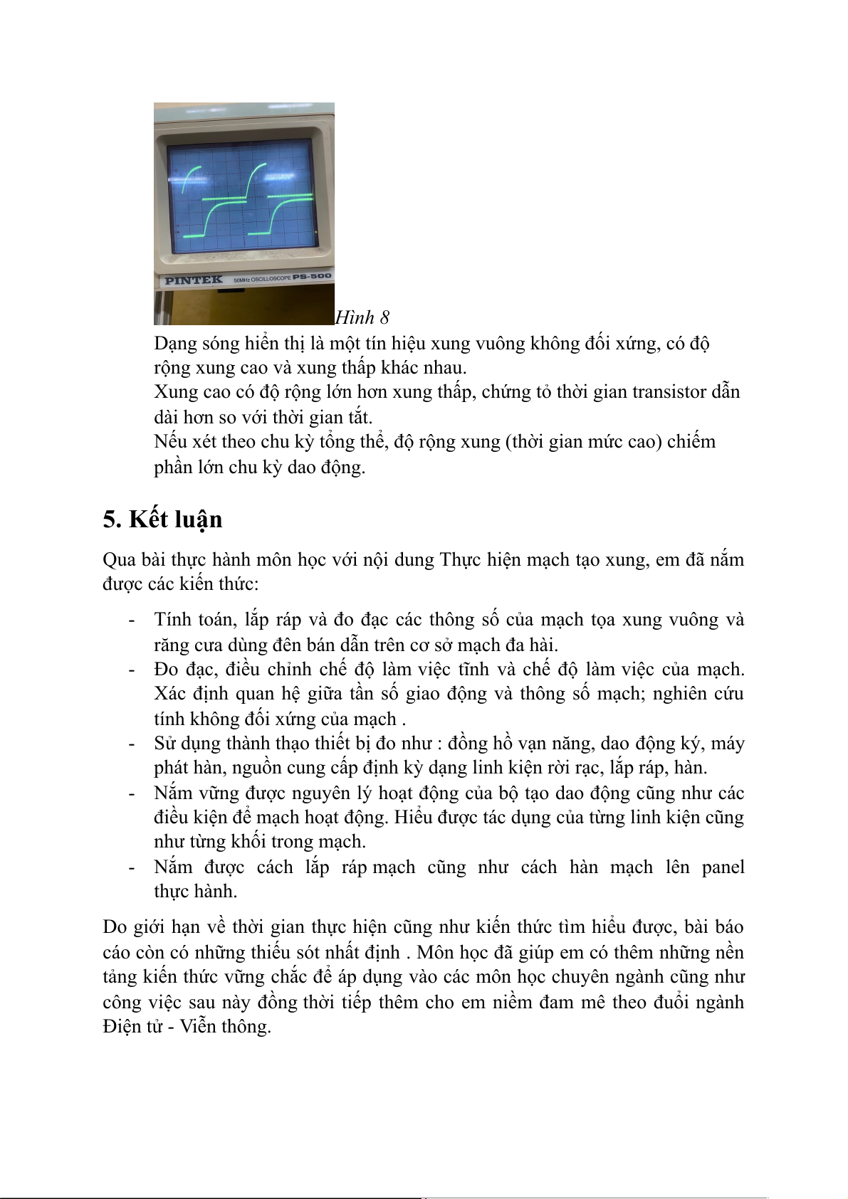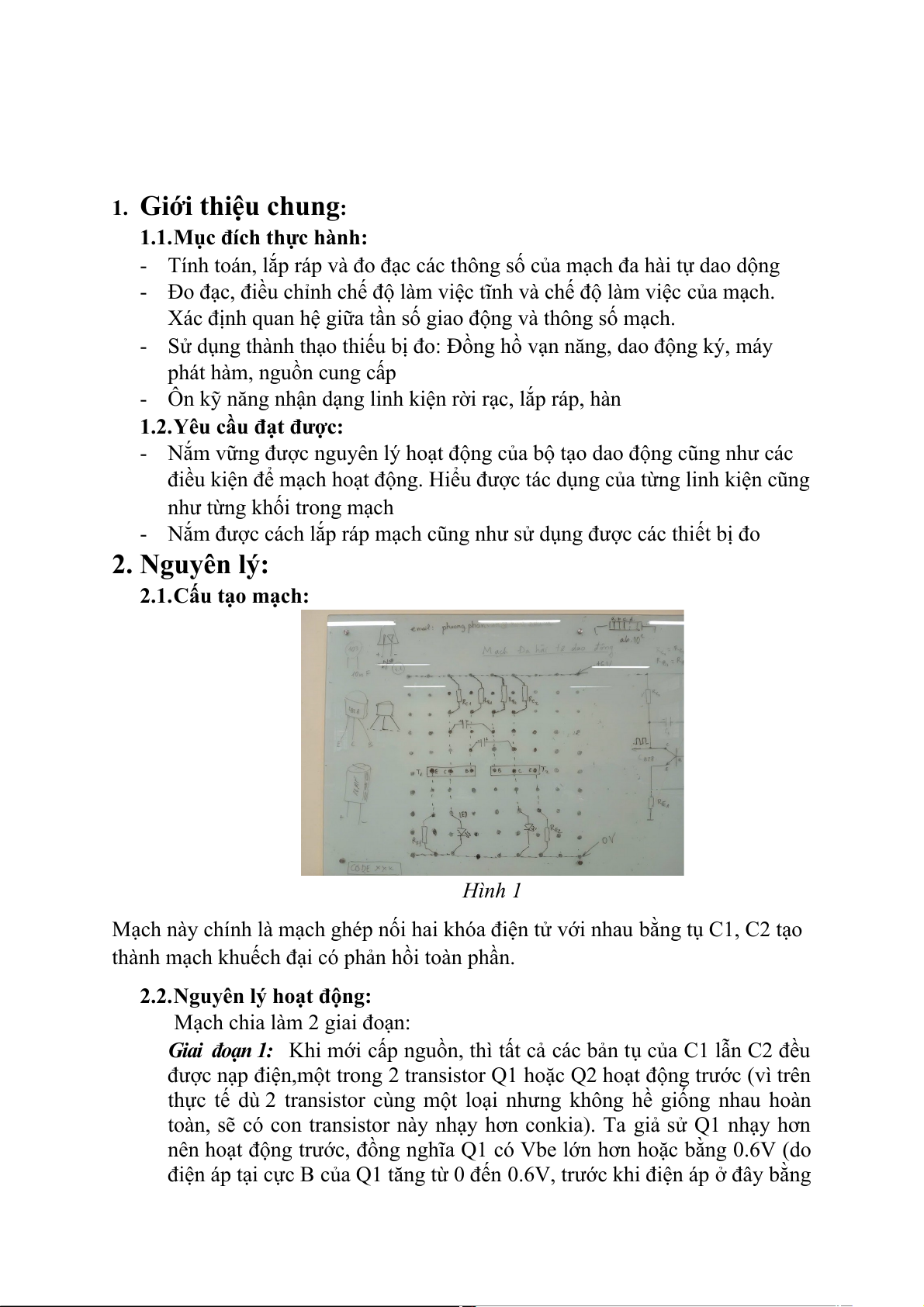 - Tính toán, lắp ráp và đo đạc các thông số của mạch đa hài tự dao dộng
