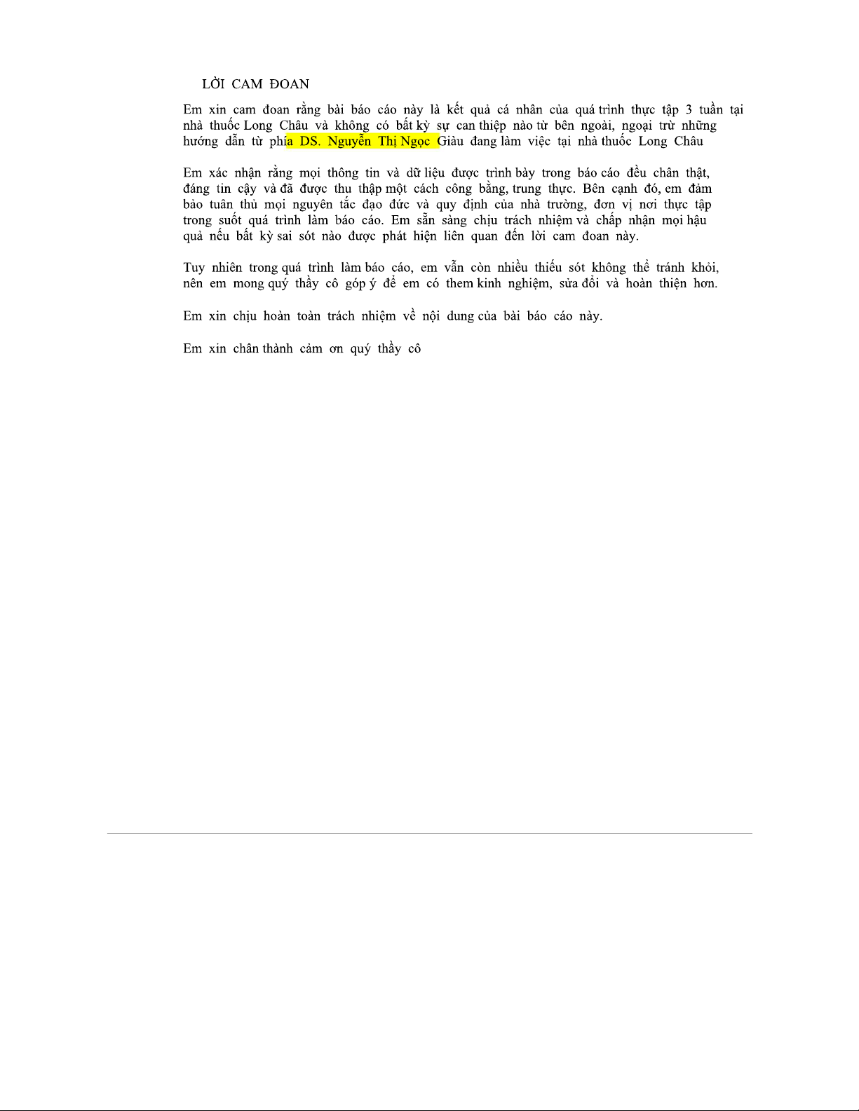 Báo cáo Thực Tập Tại Nhà Thuốc Long Châu - Mã HP12345
