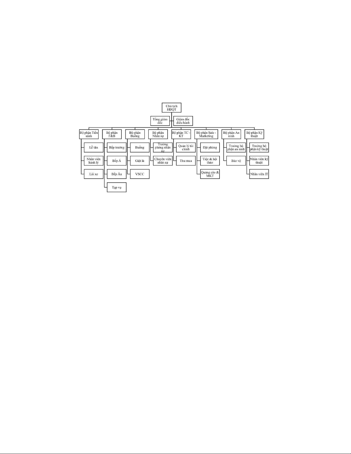dịch vụ chính như nhà hàng, dịch vụ đồ uống, dịch vụ phòng, dịch vụ tiệc. . Bộ phận