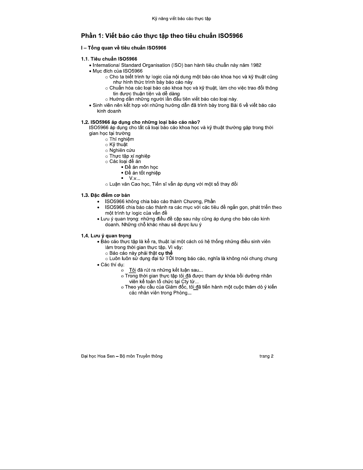 Báo cáo Thực tập theo Tiêu chuẩn ISO-5966: Hướng dẫn và Lưu ý