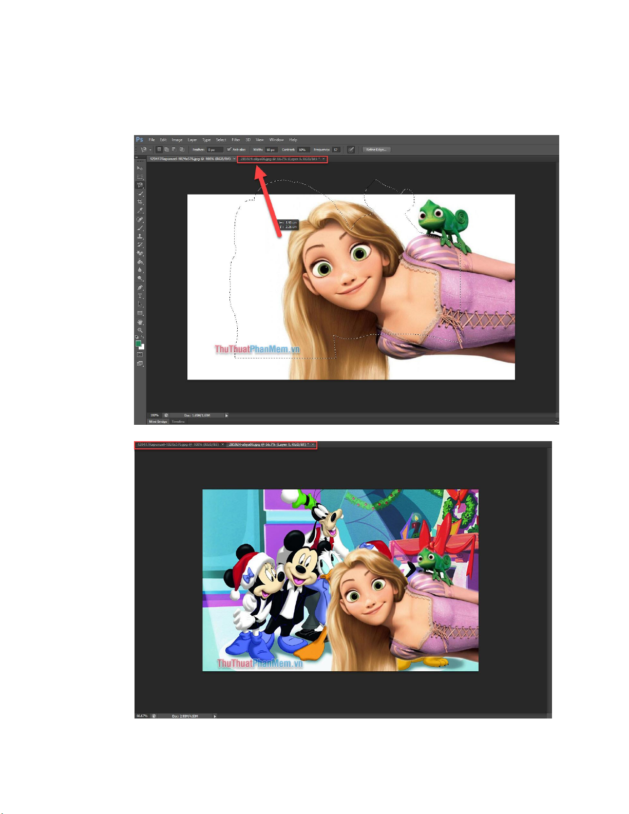 - Bước 1: Chuẩn bị 2 bức ảnh bạn muốn cắt và ghép, mở cả 2 trong Photoshop.