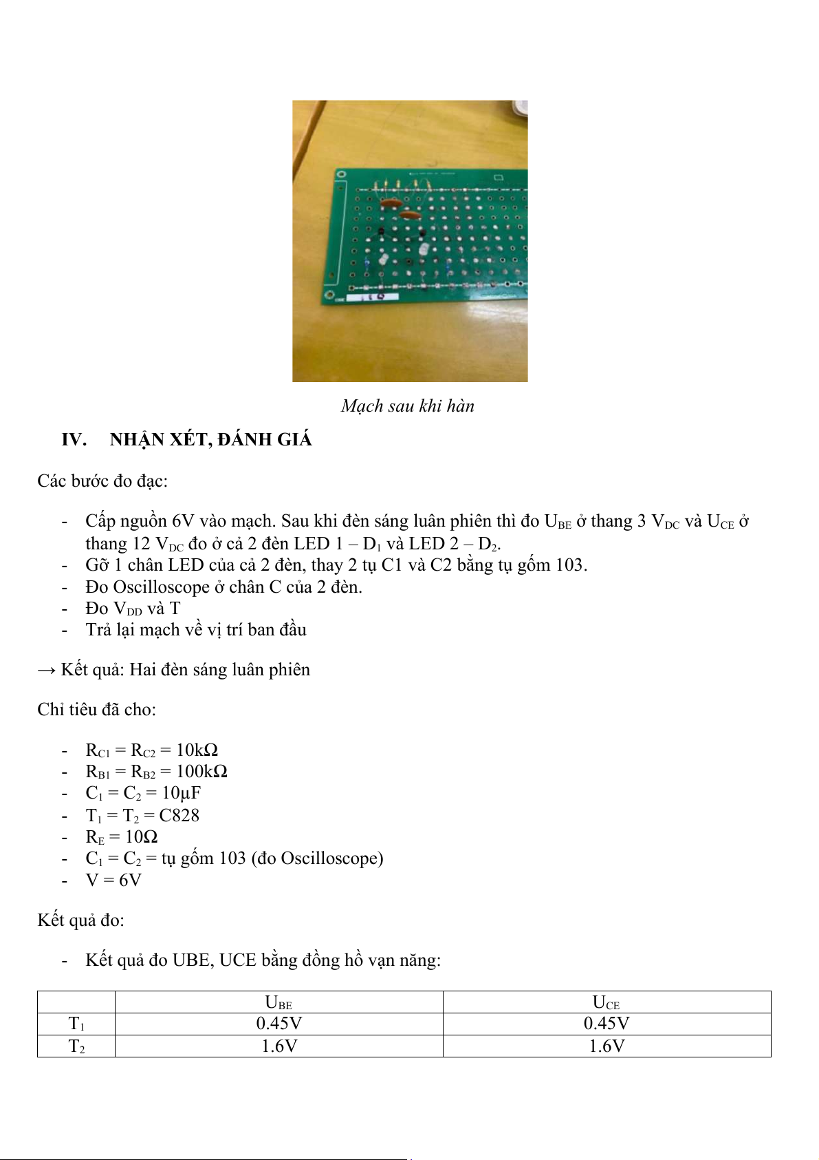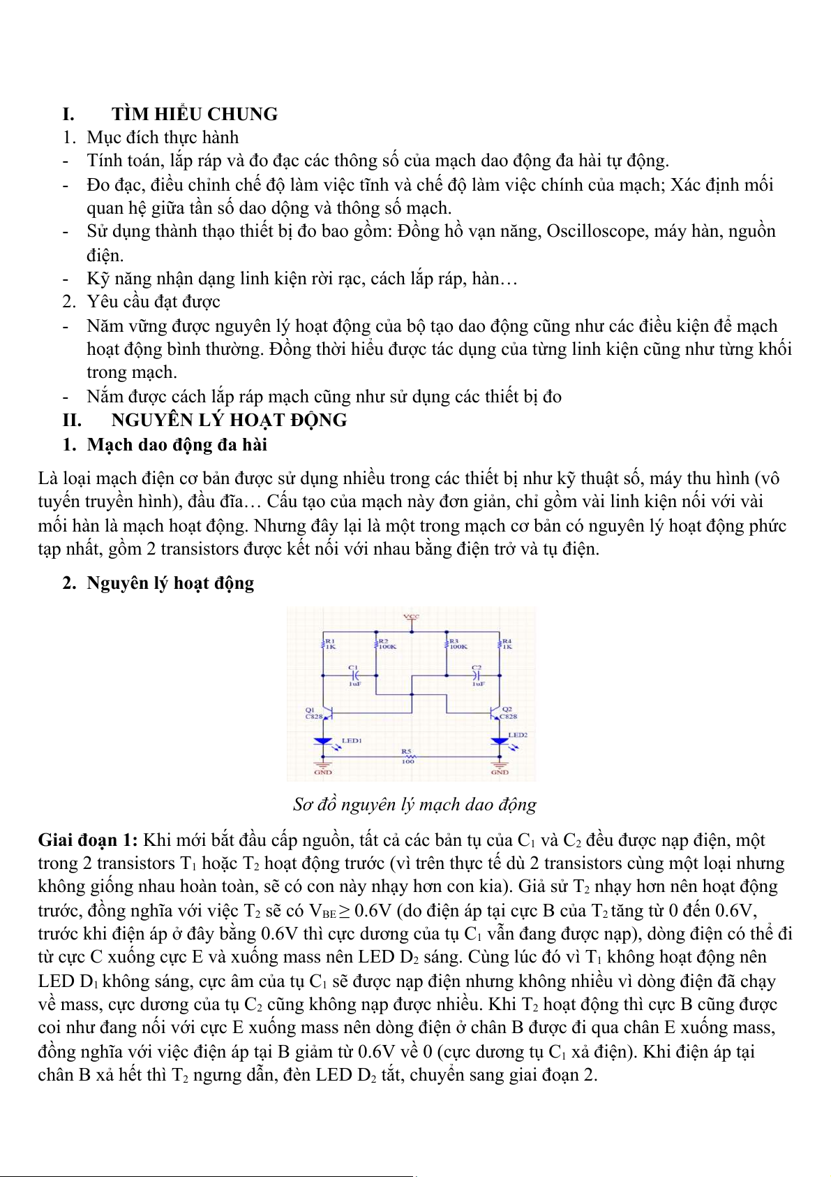 - Tính toán, lắp ráp và đo đạc các thông số của mạch dao động đa hài tự động.
