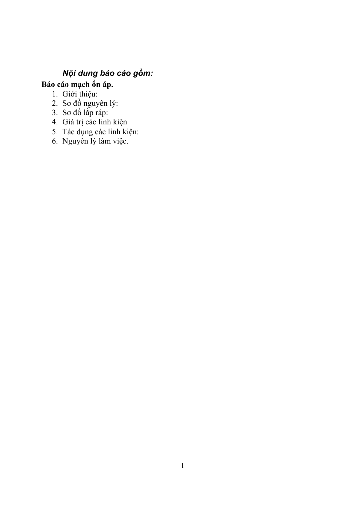 Báo cáo mạch ổn áp. 1. Giới thiệu: 2. Sơ đồ nguyên lý: 3. Sơ đồ lắp ráp: 4. Giá trị các linh kiện