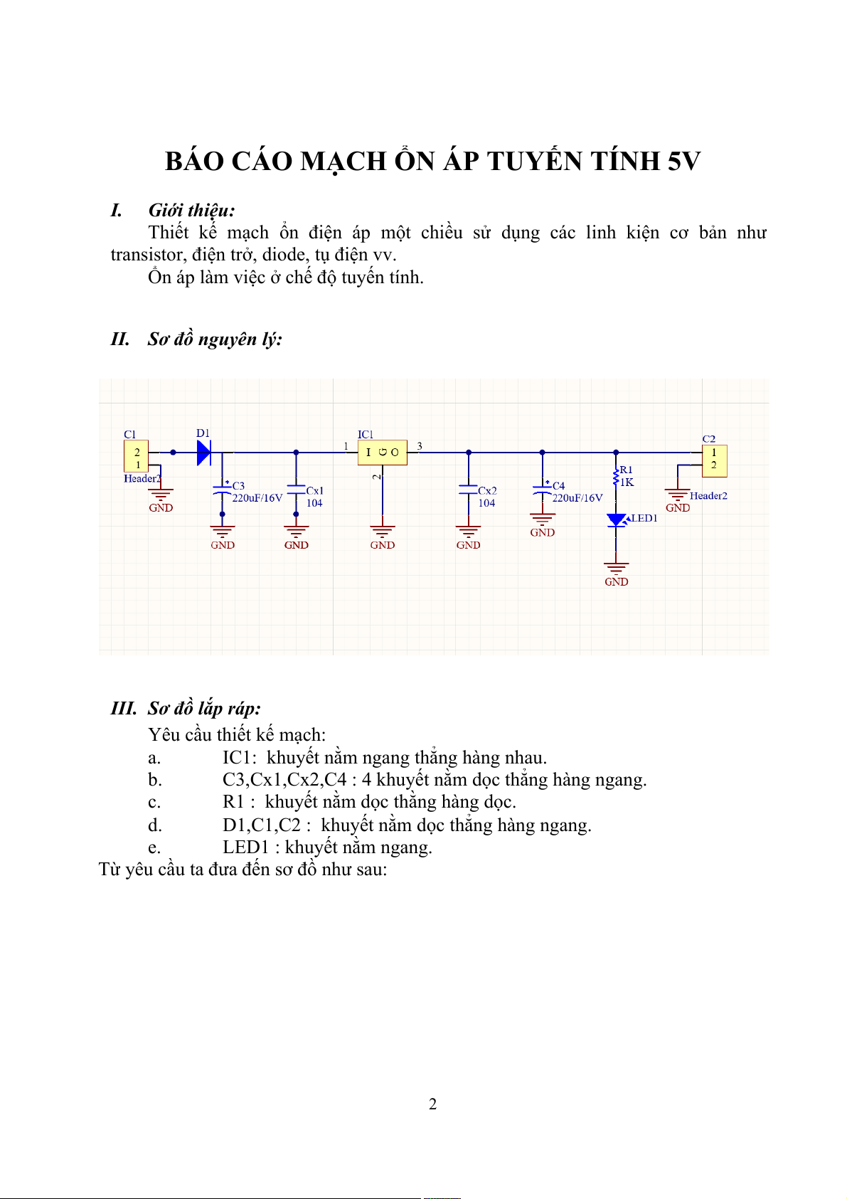 BÁO CÁO MẠCH ỔN ÁP TUYẾN TÍNH 5V I. Giới thiệu: