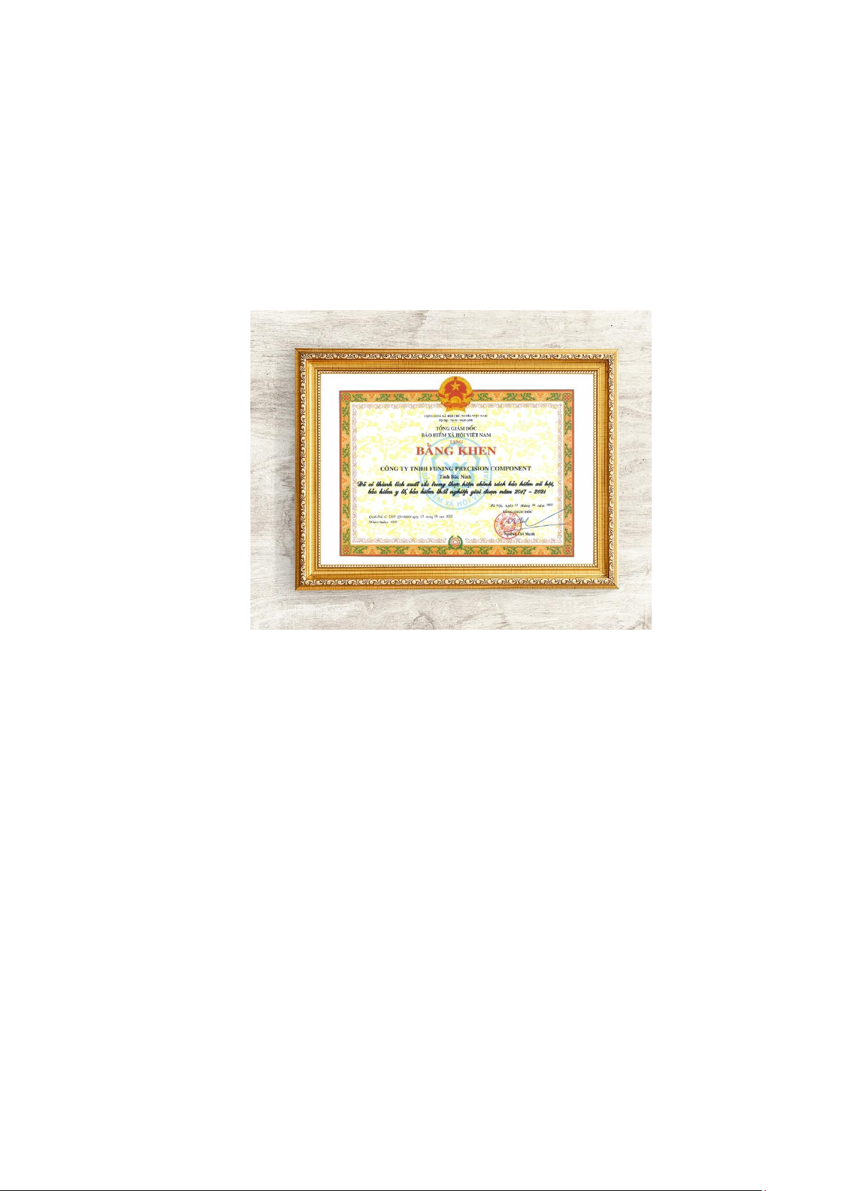 được bằng khen của BHXH Việt Nam về việc có thành tích xuất sắc trong thực