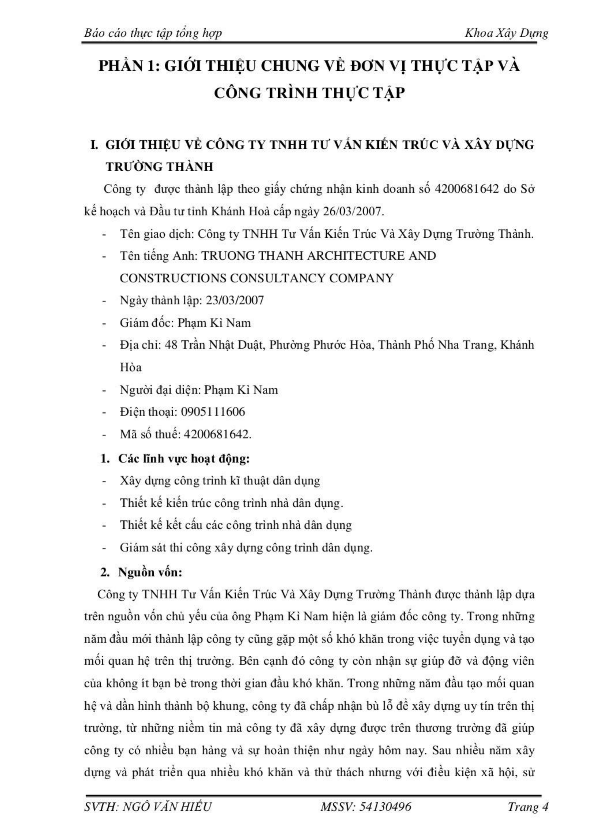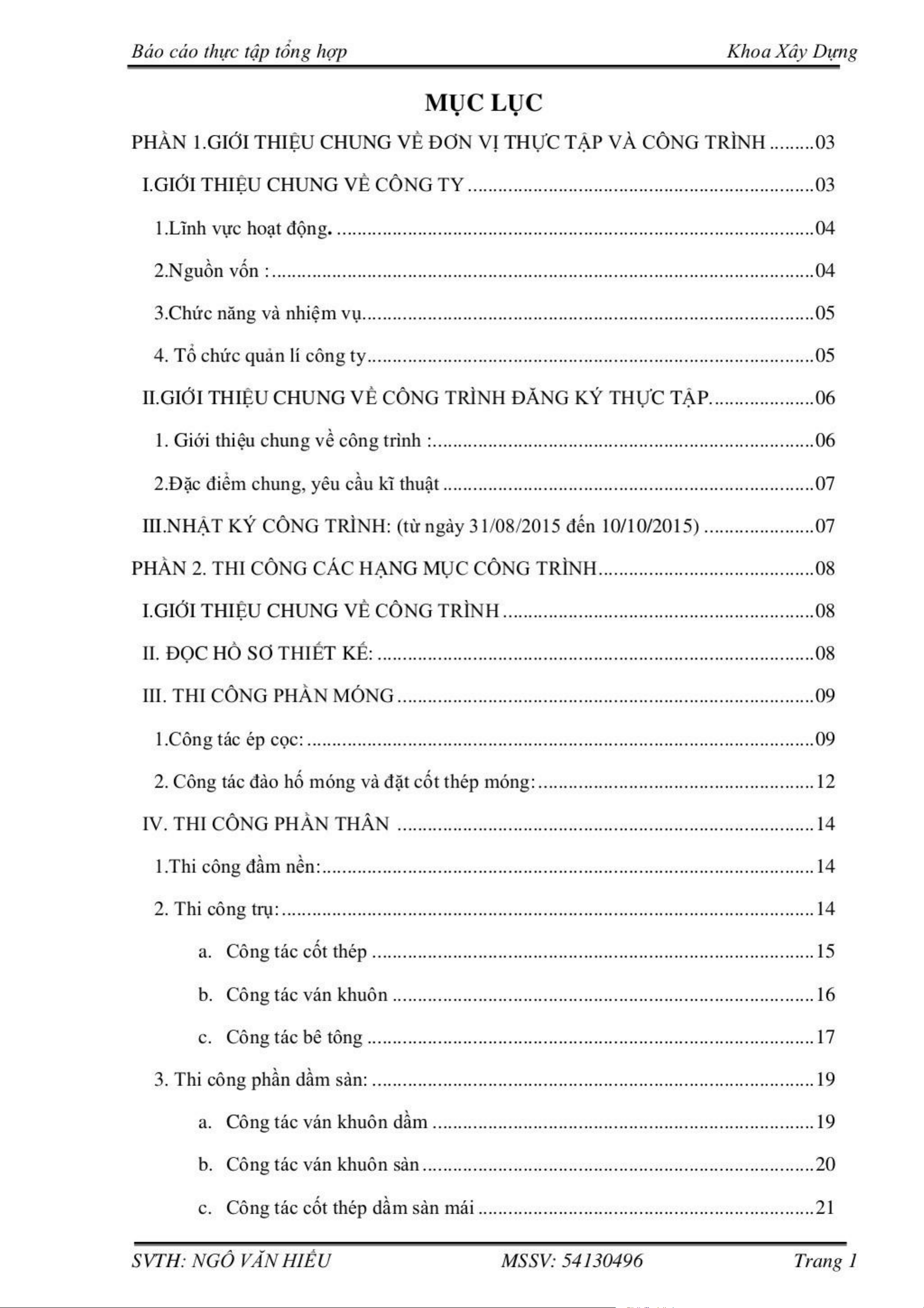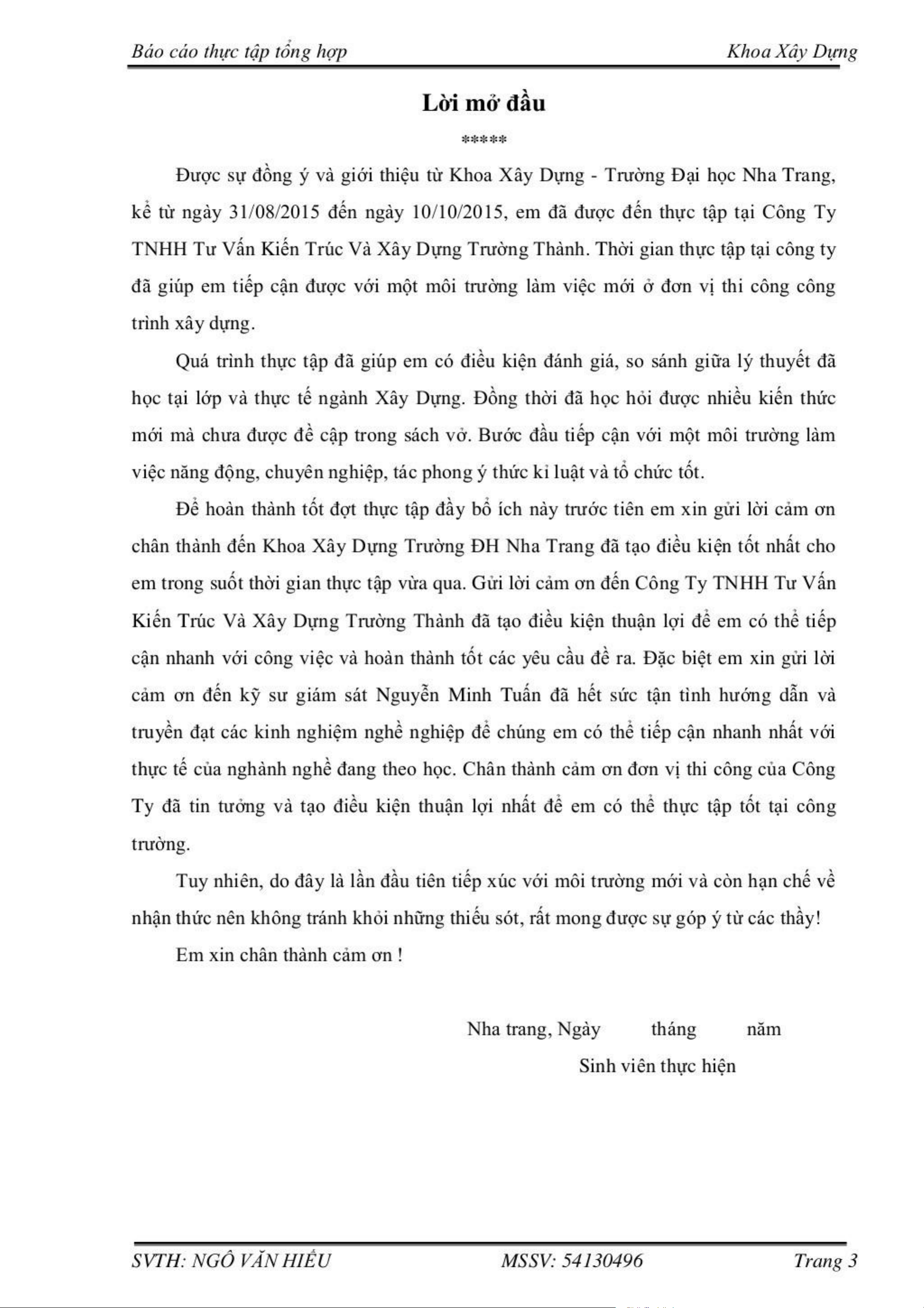 Báo cáo thực tập tốt nghiệp ngành xây dựng | Môn Báo cáo thực tập tốt nghiệp - Đại học Vinh