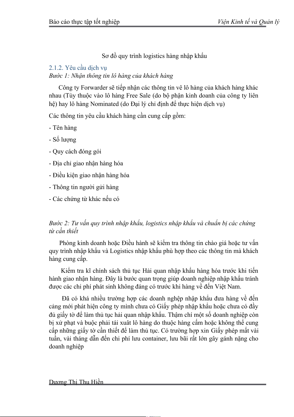 tuần, vài tháng dẫn đến chi phí lưu container, lưu bãi rất lớn gây gánh nặng cho doanh nghiệp Dương Thị Thu Hiền