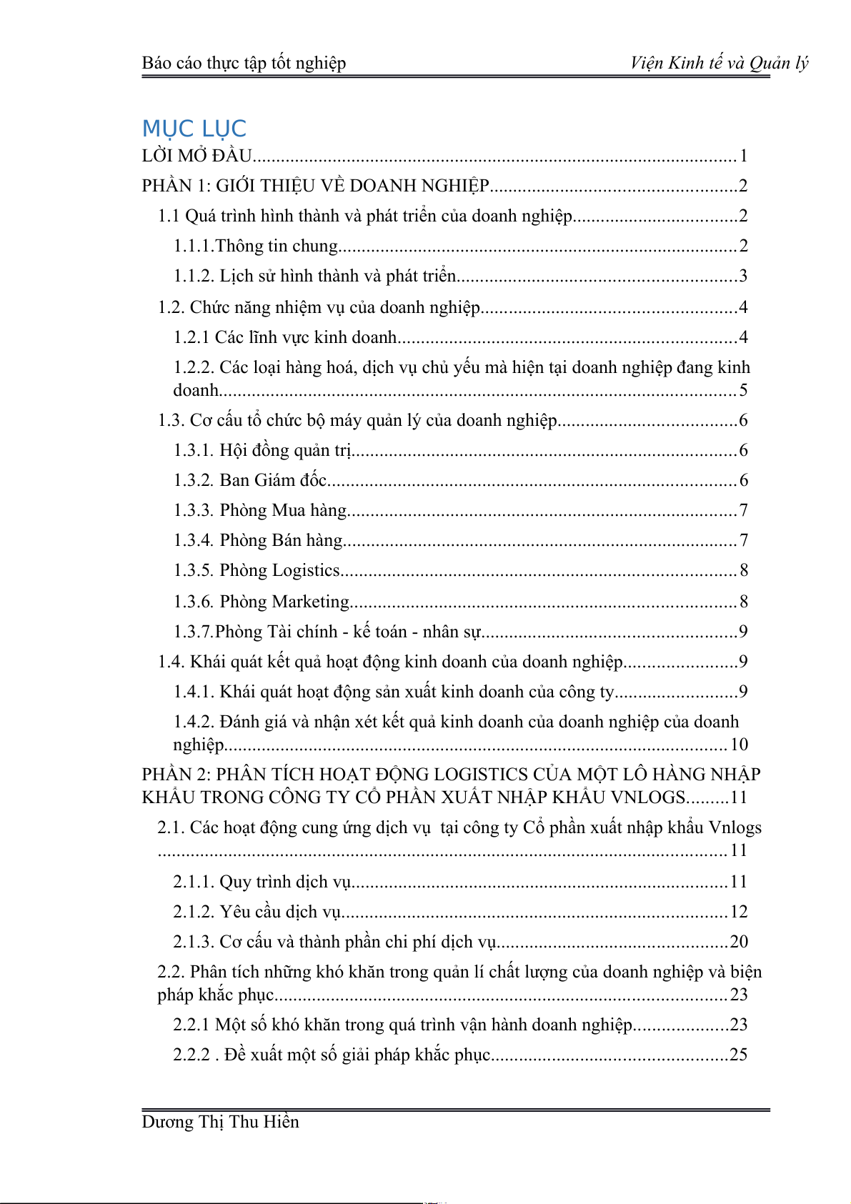 KHẨU TRONG CÔNG TY CỔ PHẦN XUẤT NHẬP KHẨU VNLOGS.........11
