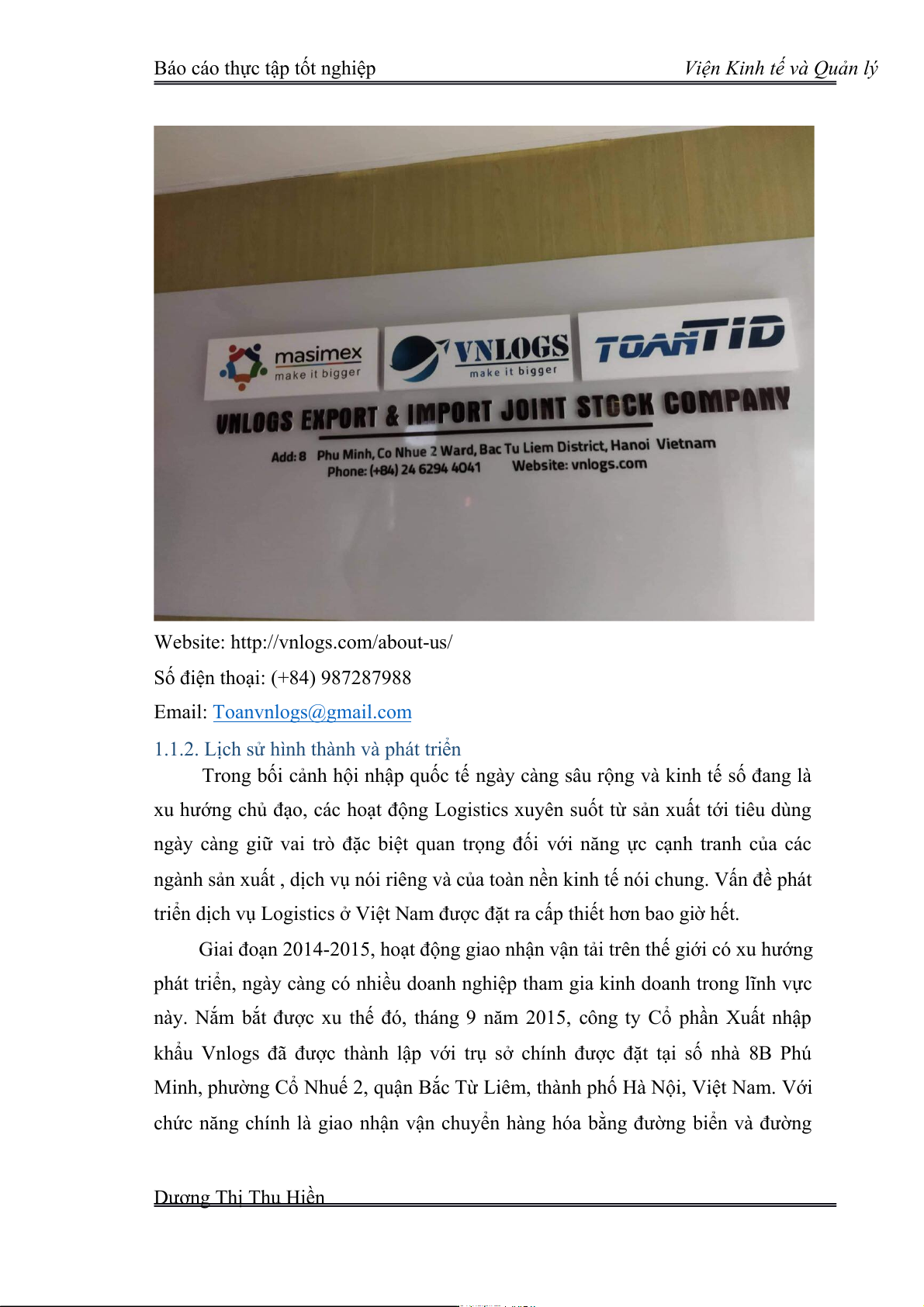 1.1 Quá trình hình thành và phát triển của doanh nghiệp 1.1.1.Thông tin chung