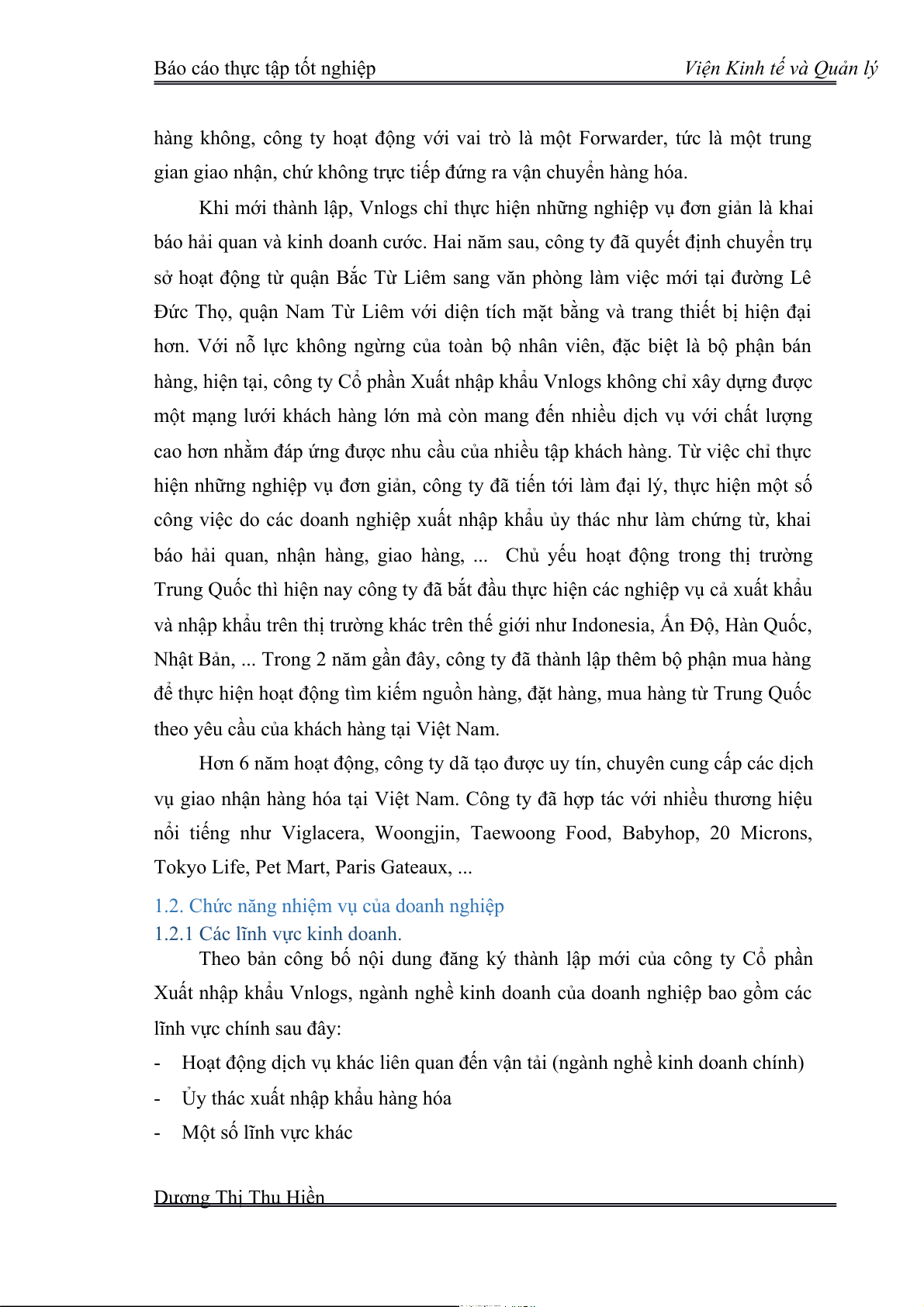 ĐỀ TÀI: Báo cáo thực tập về Công ty Cổ phần xuất nhập khẩu Vnlogs