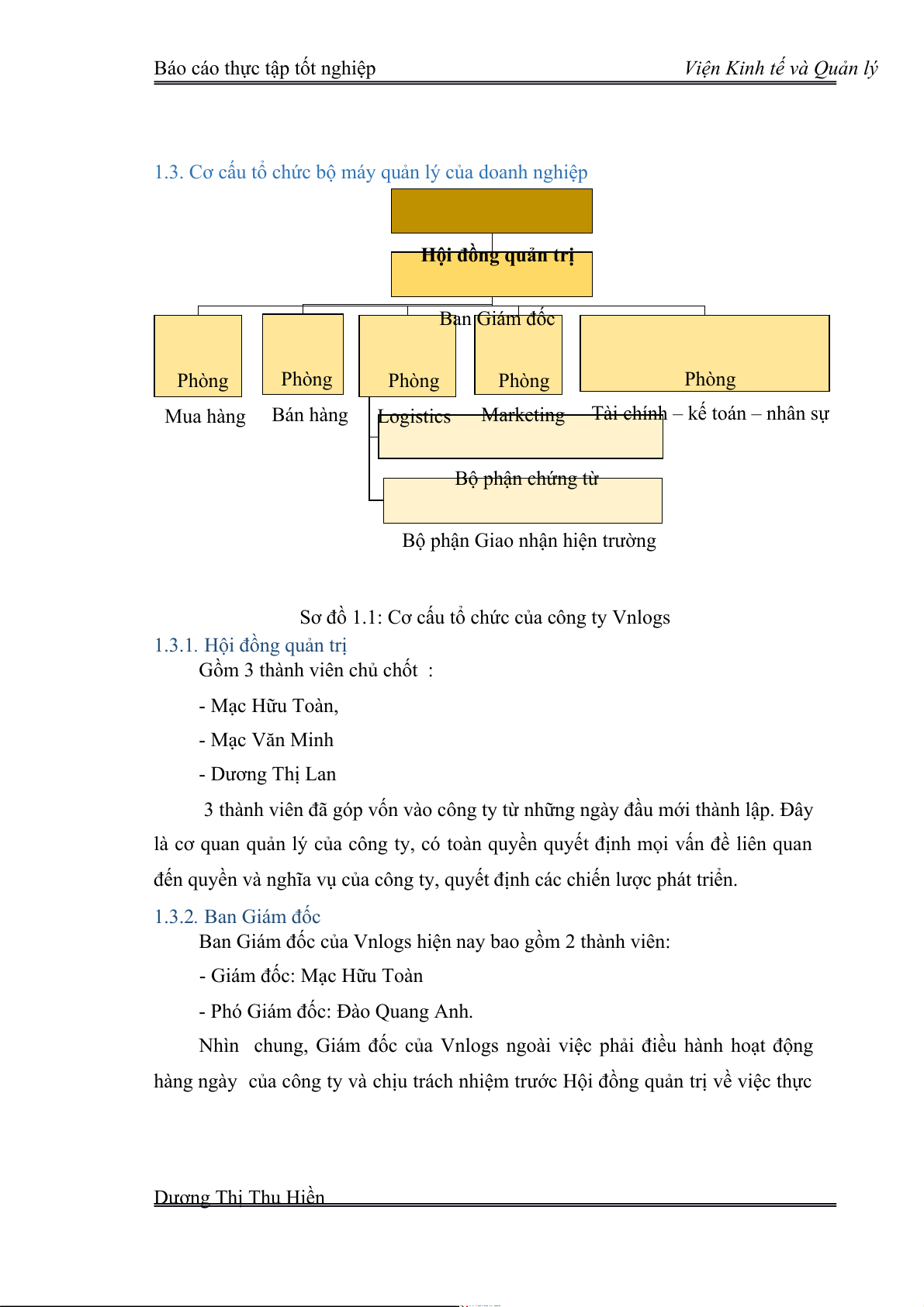 Sơ đồ cơ cấu tổ chức của công ty Cổ phần Xuất Nhập khẩu VnLogs Bảng 1.1