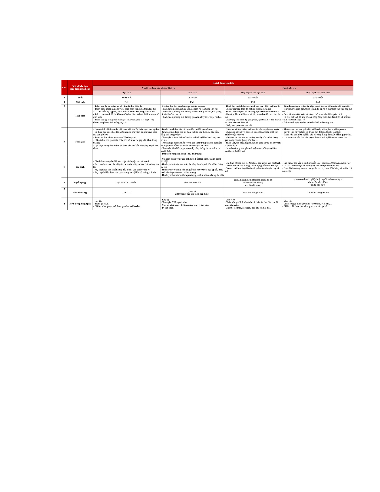 Bảng phân tích khách hàng mục tiêu trên thể hiện rõ định hướng marketing theo mô hình