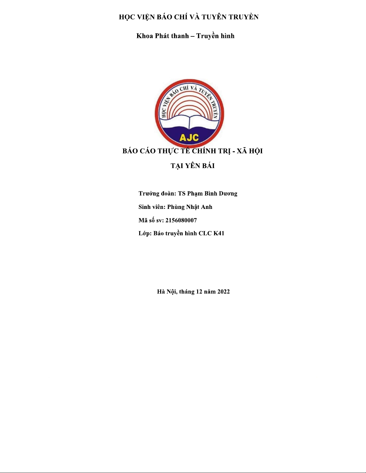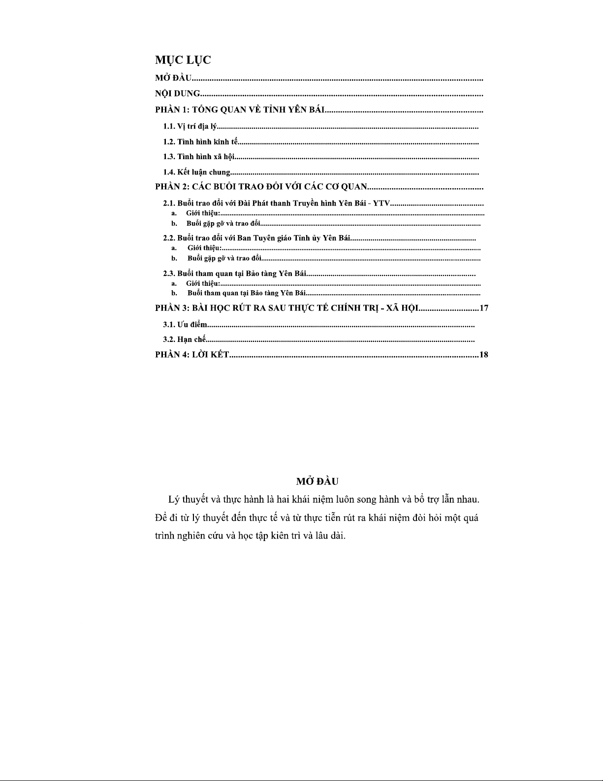 BÁO CÁO THỰC TẾ CHÍNH TRỊ - XÃ HỘI TẠI YÊN BÁI