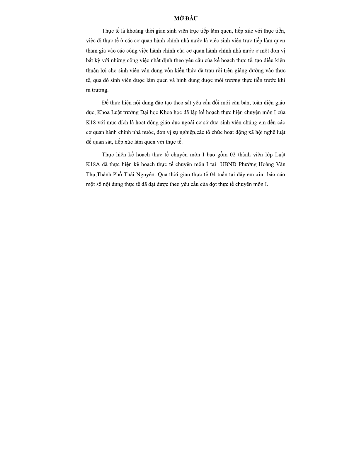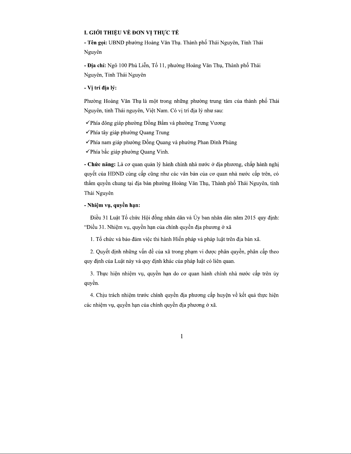 BÁO CÁO THỰC TẾ Chuyên MÔN I - Khóa 18 Tại UBND Phường Hoàng Văn Thụ