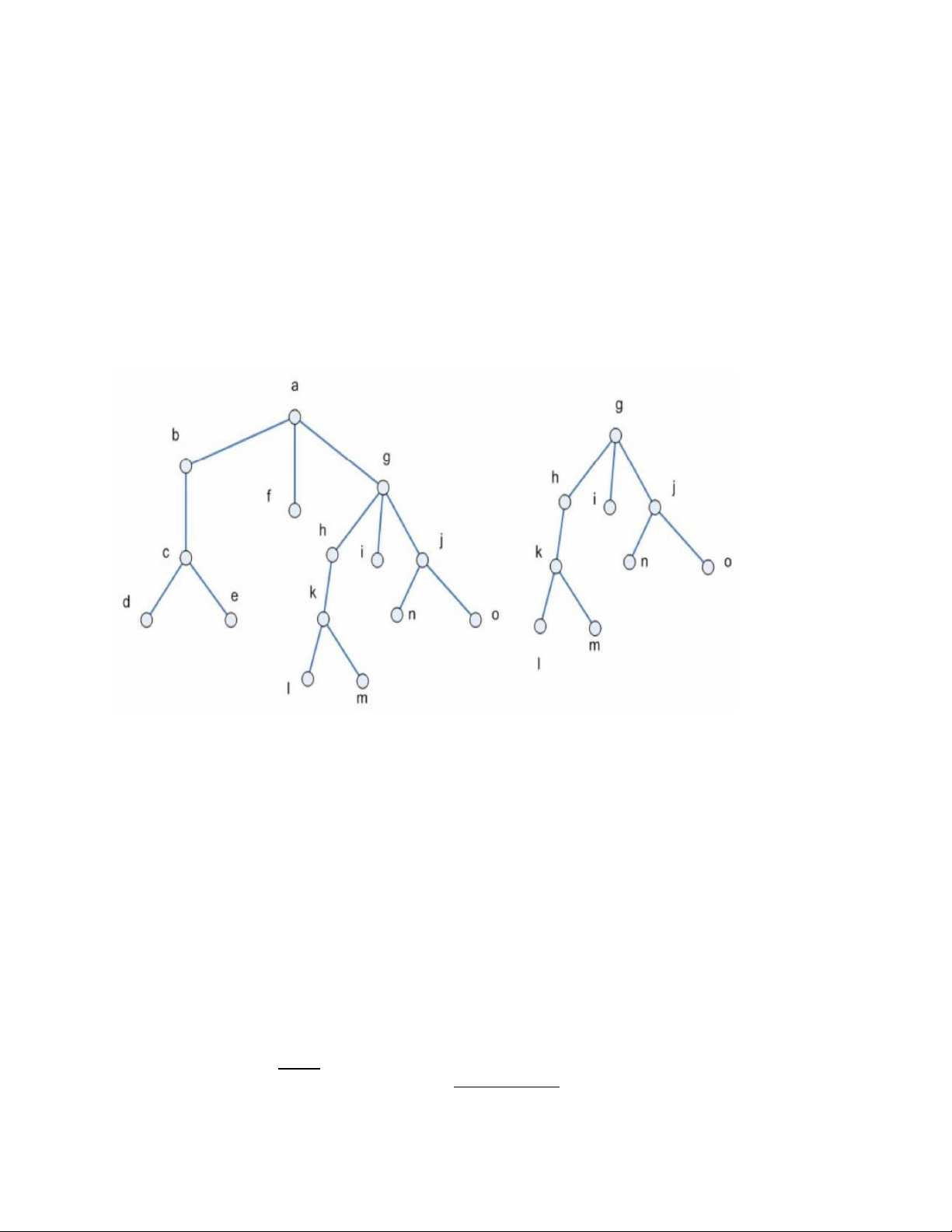 Ví dụ 1. Trong cây như hình, hãy tìm cha của c, con của g, các tổ tiên của e, con cháu của