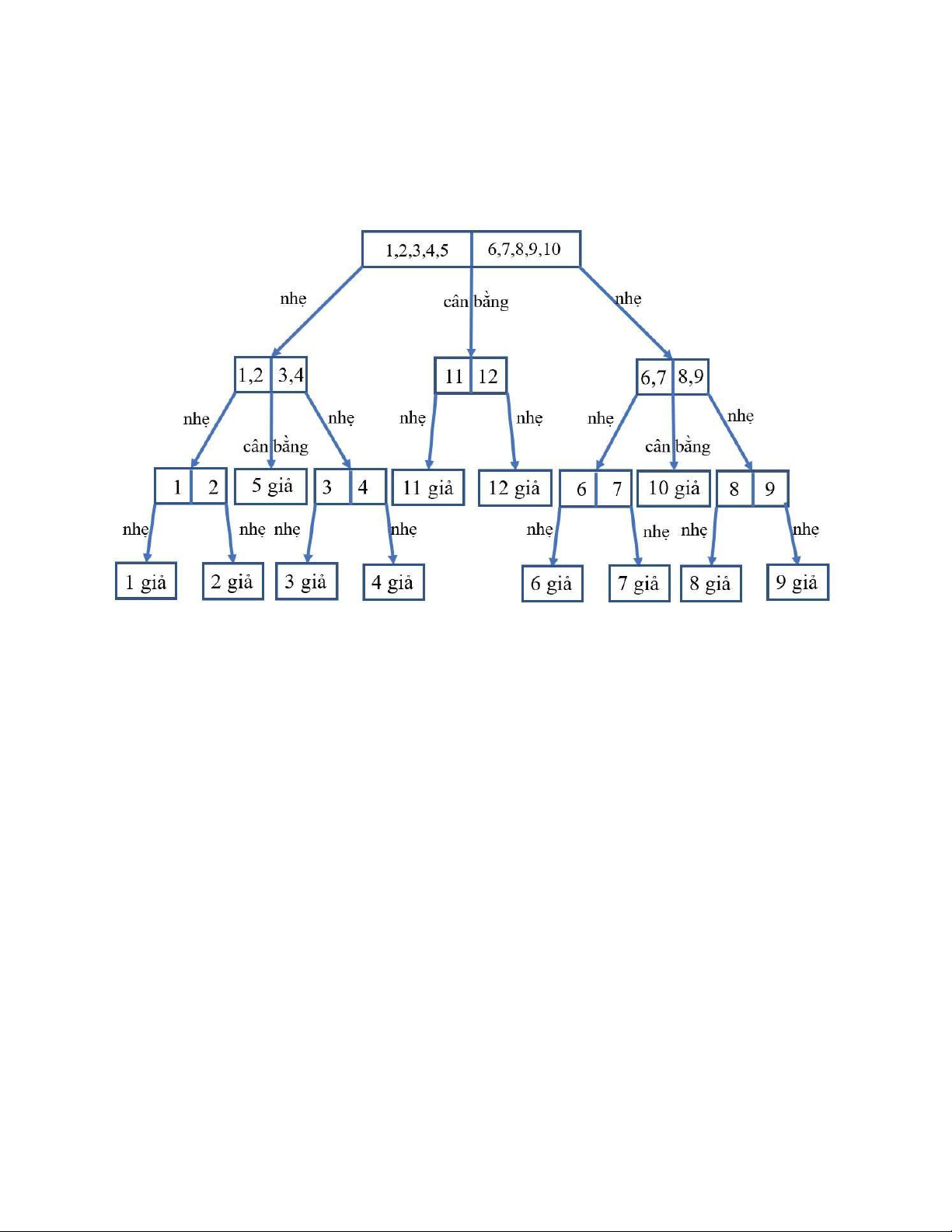 thuật toán tìm đồng xu giả với số lần cân tìm được.      Giải