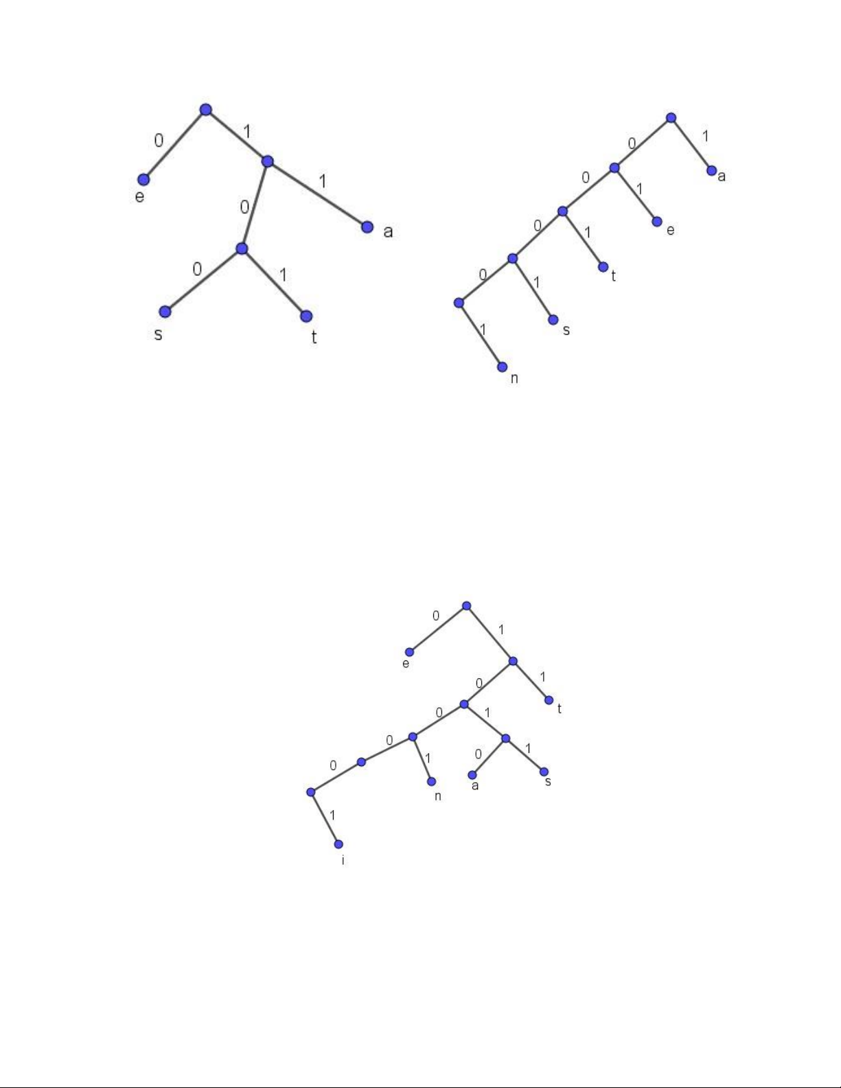 b) a : 1, : 01, : 001,e  t  s = 0001, n = 00001;