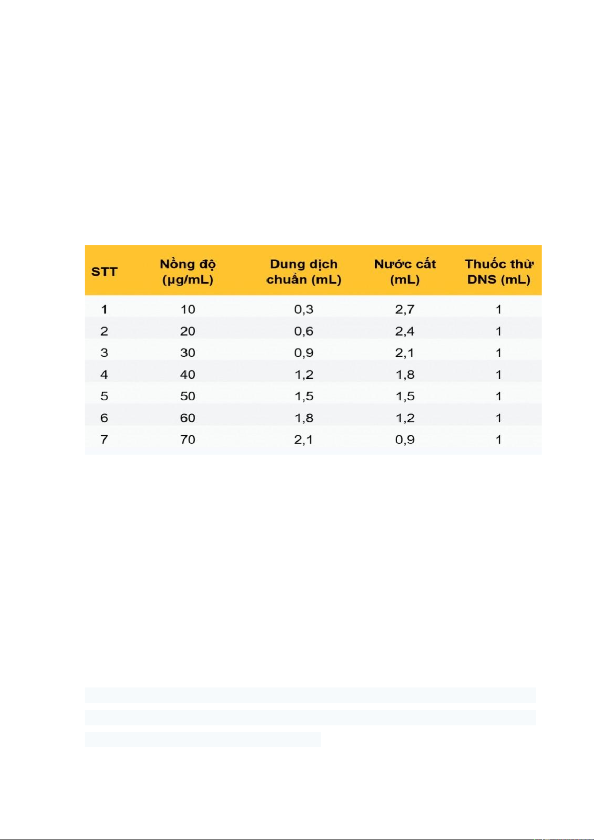 Bảng 1: Bảng Pha loãng nồng độ đường chuẩn glucose