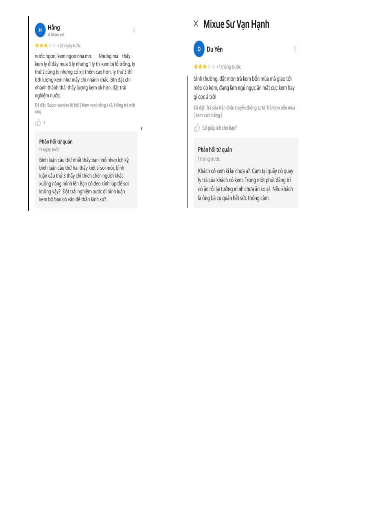 mặt hương vị đồ uống, tuy nhiên ảnh hưởng hơn nữa là do dịch vụ mà khách hàng trải nghiệm