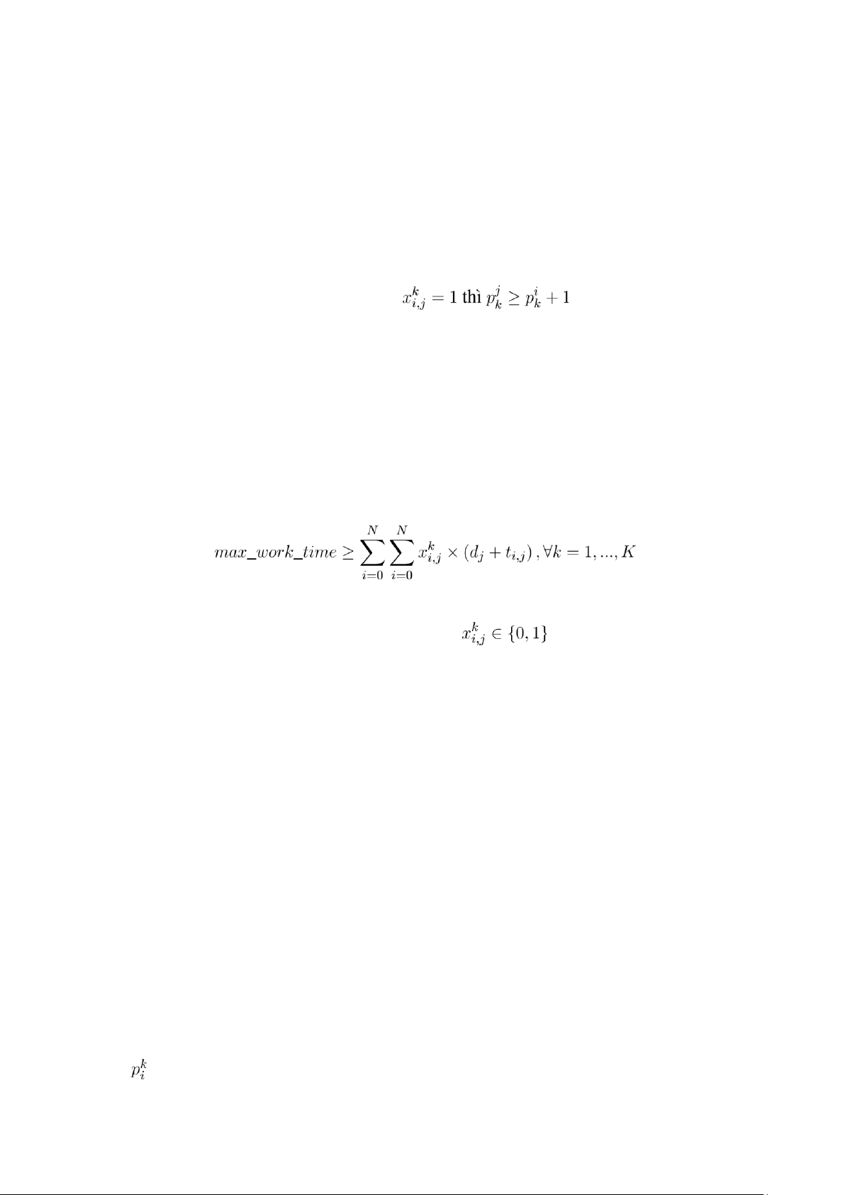 • để chỉ thứ tự của khách hàng thứ i trong hành trình của nhân viên k. •