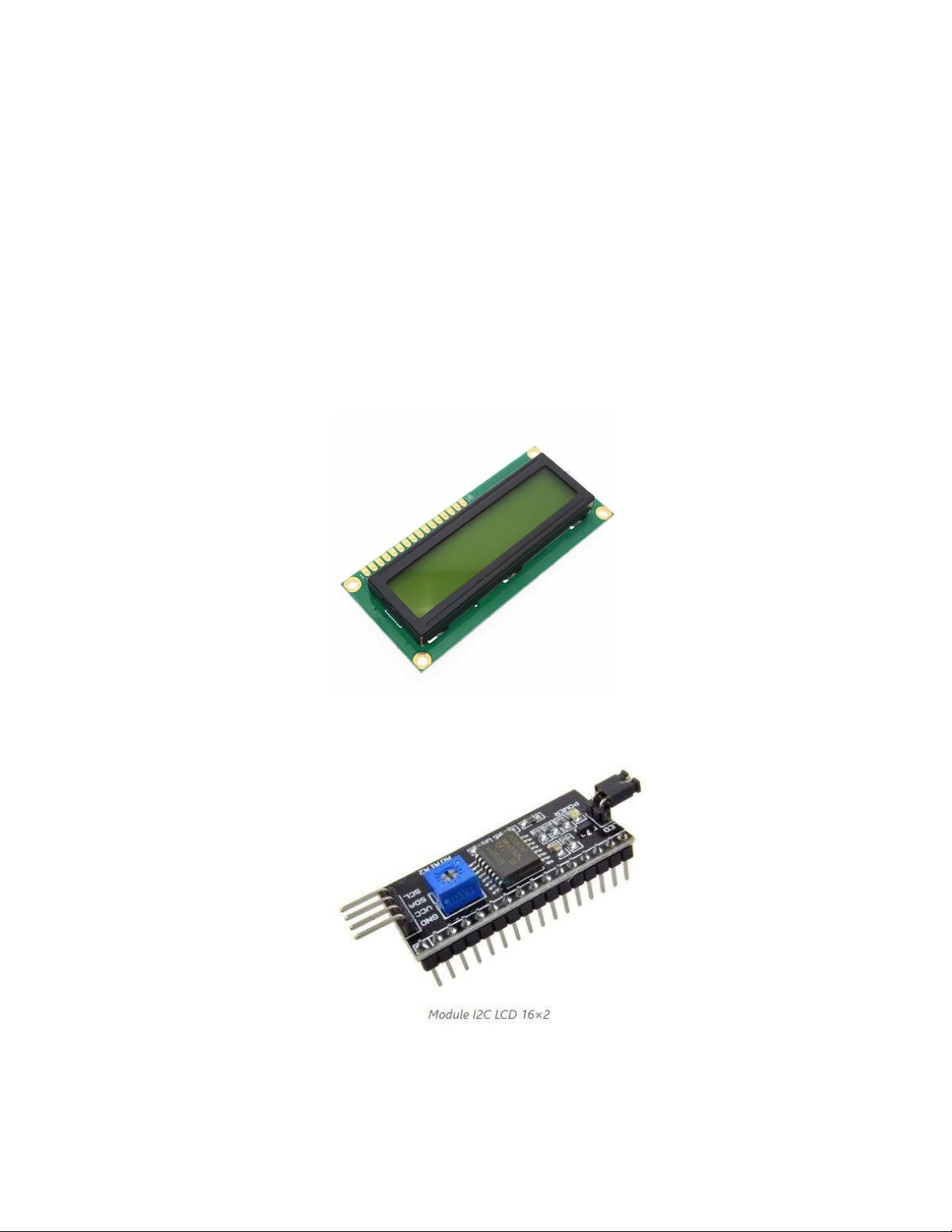 3.3.3. Động cơ servo SG90 180 độ Nội dung Thông số Điện áp hoạt động 4.8-5VDC Tốc độ 0.12 sec/ 60 deg (4.8VDC) Lực kéo 1.6 Kg.cm Kích thước 21x12x22mm Trọng lượng 9g 3.3.4. LCD I2C o LCD